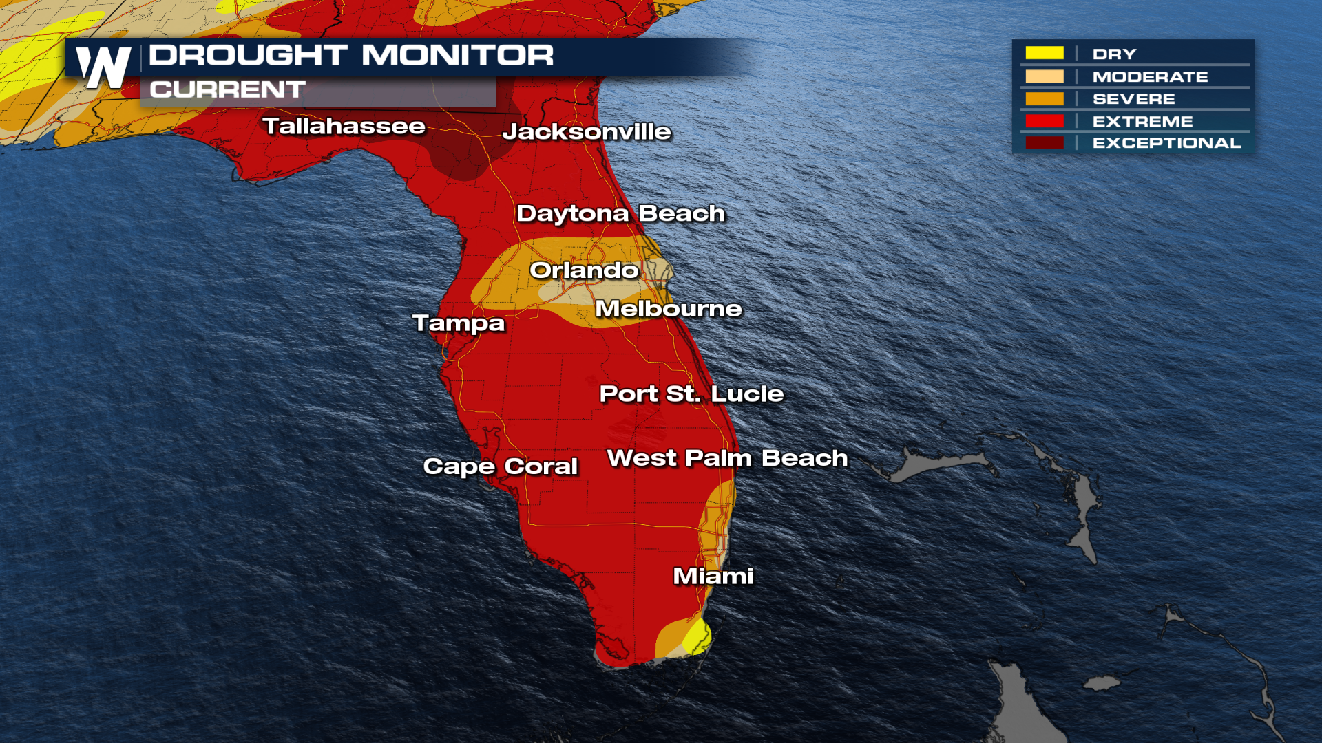 This rain arrives at a critical time, as Florida’s drought conditions have worsened in the latest update. Much of the state is now experiencing extreme to exceptional drought (levels 4-5), which has already led to water restrictions.