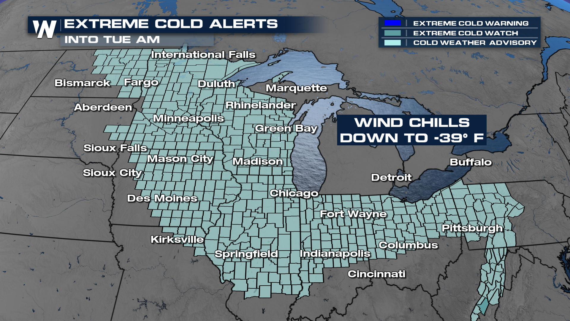 Behind this system, bitter cold will rush in with wind chill factors that will drop down to the negatives. Cold weather advisories have been issued for this area for wind chill factors that could get as cold as 40 below zero.