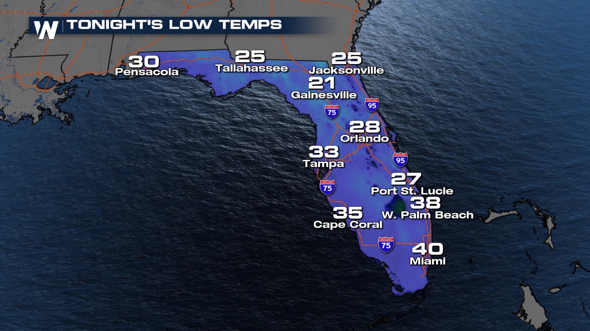Even areas like the Tampa area will slip into the freezer by Sunday morning. That's where things might get interesting...