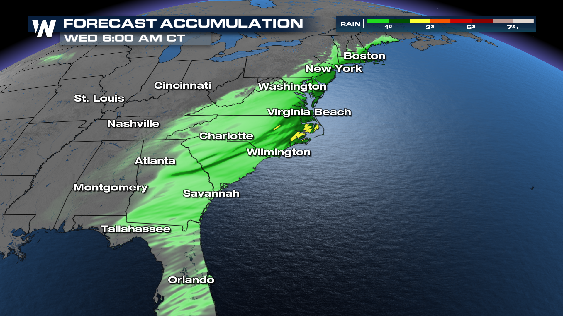 This surface low will pull in tropical moisture and produce downpours across the South and Southeast, where temperatures will be warm enough to support rain and even a few thunderstorms. On the northern side of the system, ice and snow will become an issue across portions of the Mid-South, which you can read more about here. As mentioned above, rain has begun and will continue to saturate the south into Tuesday before paralleling the Atlantic Coast on Tuesday.