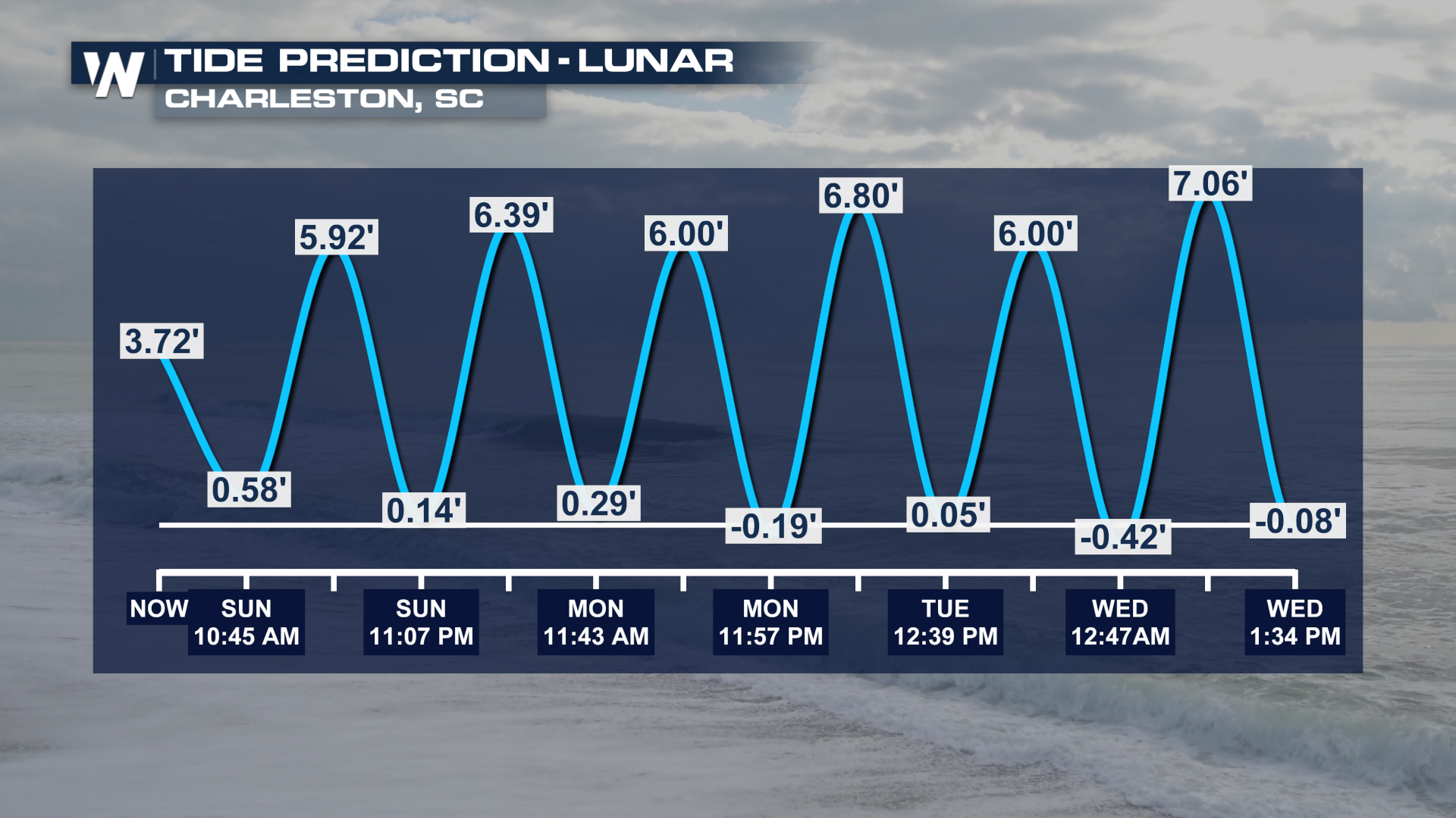 November King TidesKing tides will be ramping up throughout the week ahead. Note how much the tidal range grows in Charleston from Sunday to Wednesday, increasing from about 5.3 feet to over 7.5 feet by Wednesday!