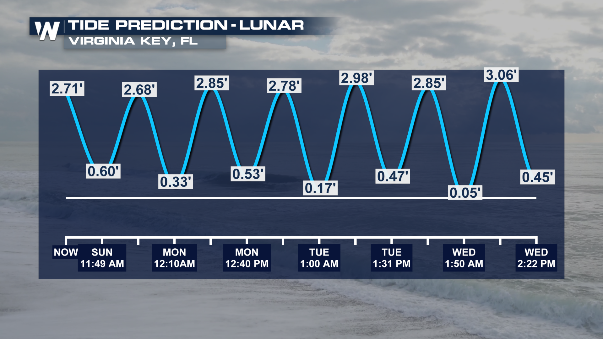 Tides near Miami (Virginia Key below) will also increase this week, increasing from about 2 feet to 3 feet!