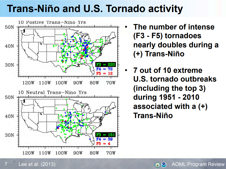 This phase also favors stronger tornadoes, as the number of high end tornadoes and outbreaks increase during this phase.