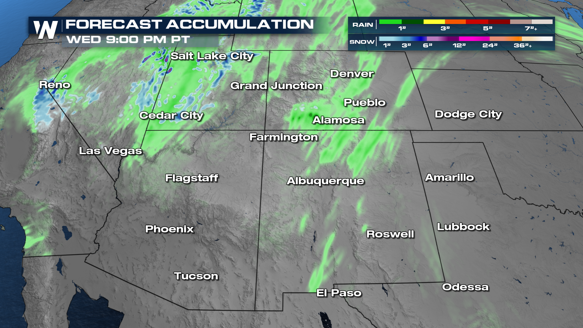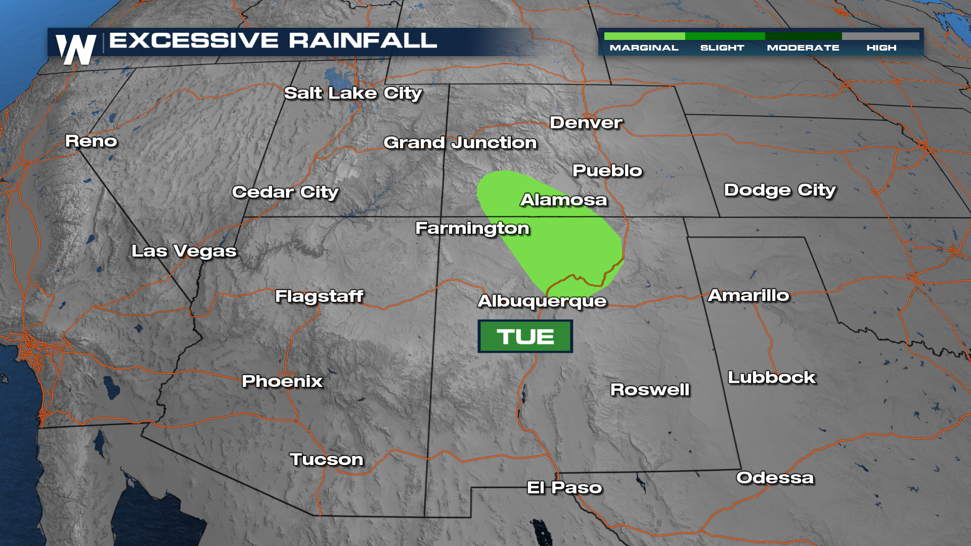 This surge of moisture across the southwest brings forth the chance for excessive rainfall in places like Alamosa, CO all the way down to Santa Fe, NM.