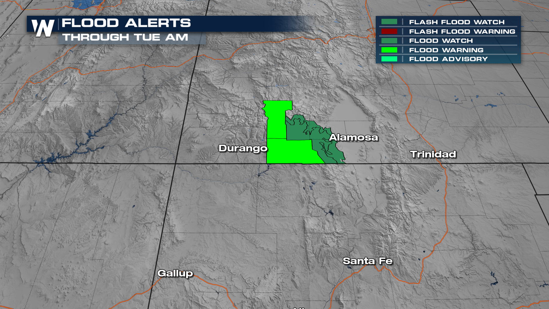 As a result, multiple flood warnings have been issued for several spots near Durango, CO. Some of these areas are near rivers and streams, which in some cases like near Rio Grande, have already seen roughly 8" of rain since the past weekend. This causes these areas to be more prone to flooding once more rain is in the forecast.