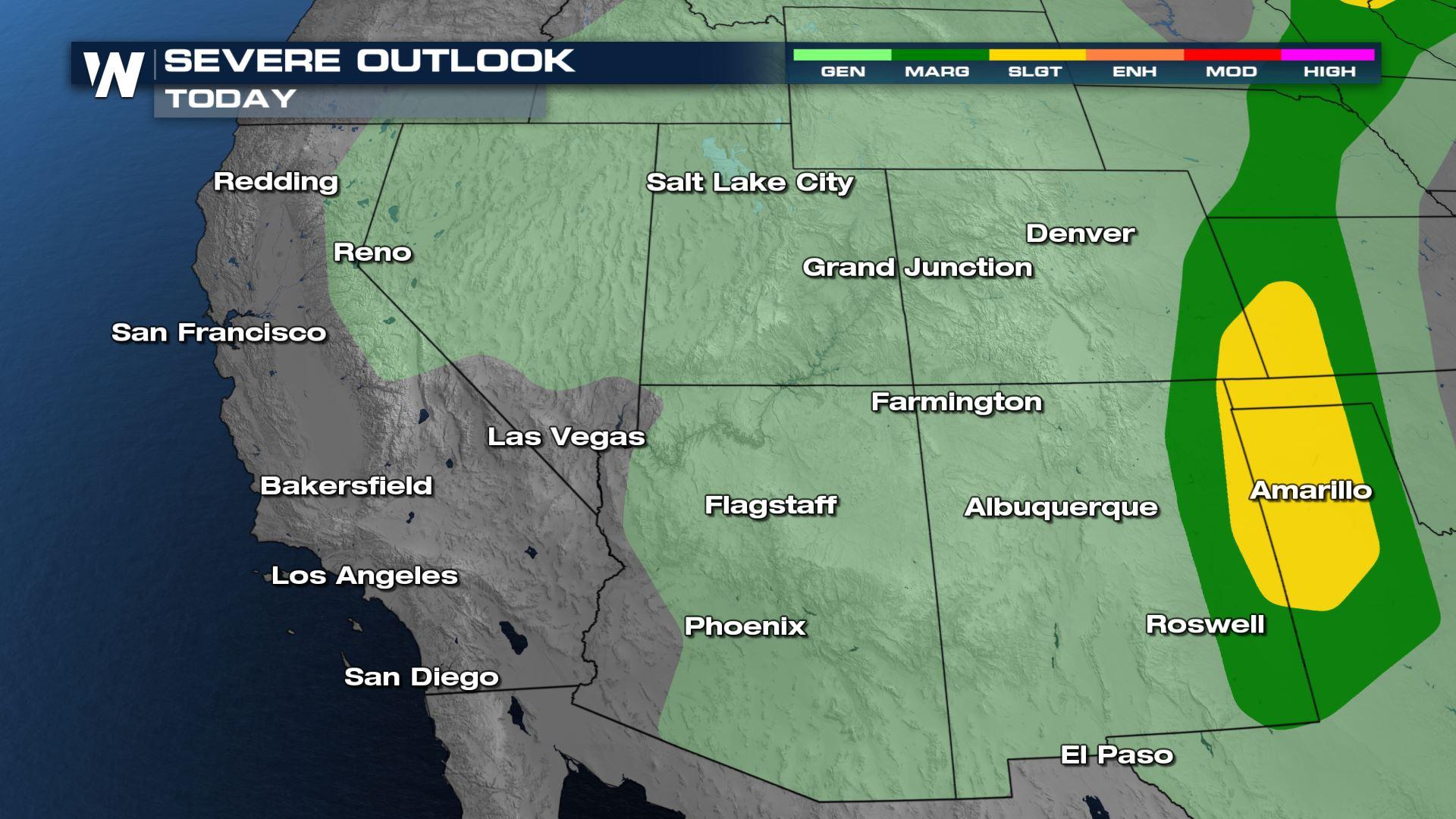 Areas near Tucson, Arizona have the highest chance for flooding today as pockets of moisture moving in from Mexico will concentrate and lead to higher rainfall rates. New Mexico has an elevated chance for flooding, by tomorrow.
