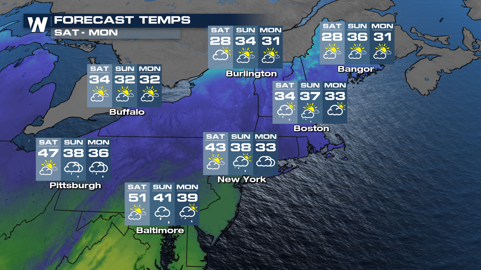 TEMPERATURESHighs will remain in the 30s through the event and as the next coastal low moves in. This will mean another potential for wintry mix Sunday and early next weeek.
