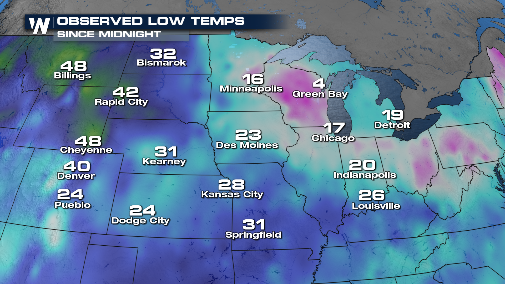 It's been a cold start to the week for millions! Areas around the Great Lakes and Ohio River Valley took the most recent Arctic outbreak on the chin, with temperatures plummeting below zero in some instances. On Monday, as winds flipped out of the south, we began to thaw out. Lows by Tuesday morning haven't been quite as rough - at least in the positive numbers!