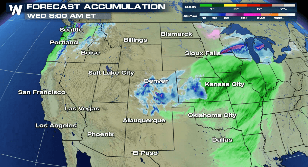 For Tuesday afternoon, the low will push out into the Plains and snowfall will move across the western Great Lakes states. The atmosphere will begin to warm on late Tuesday night and Wednesday with most of the precipitation falling as rain.