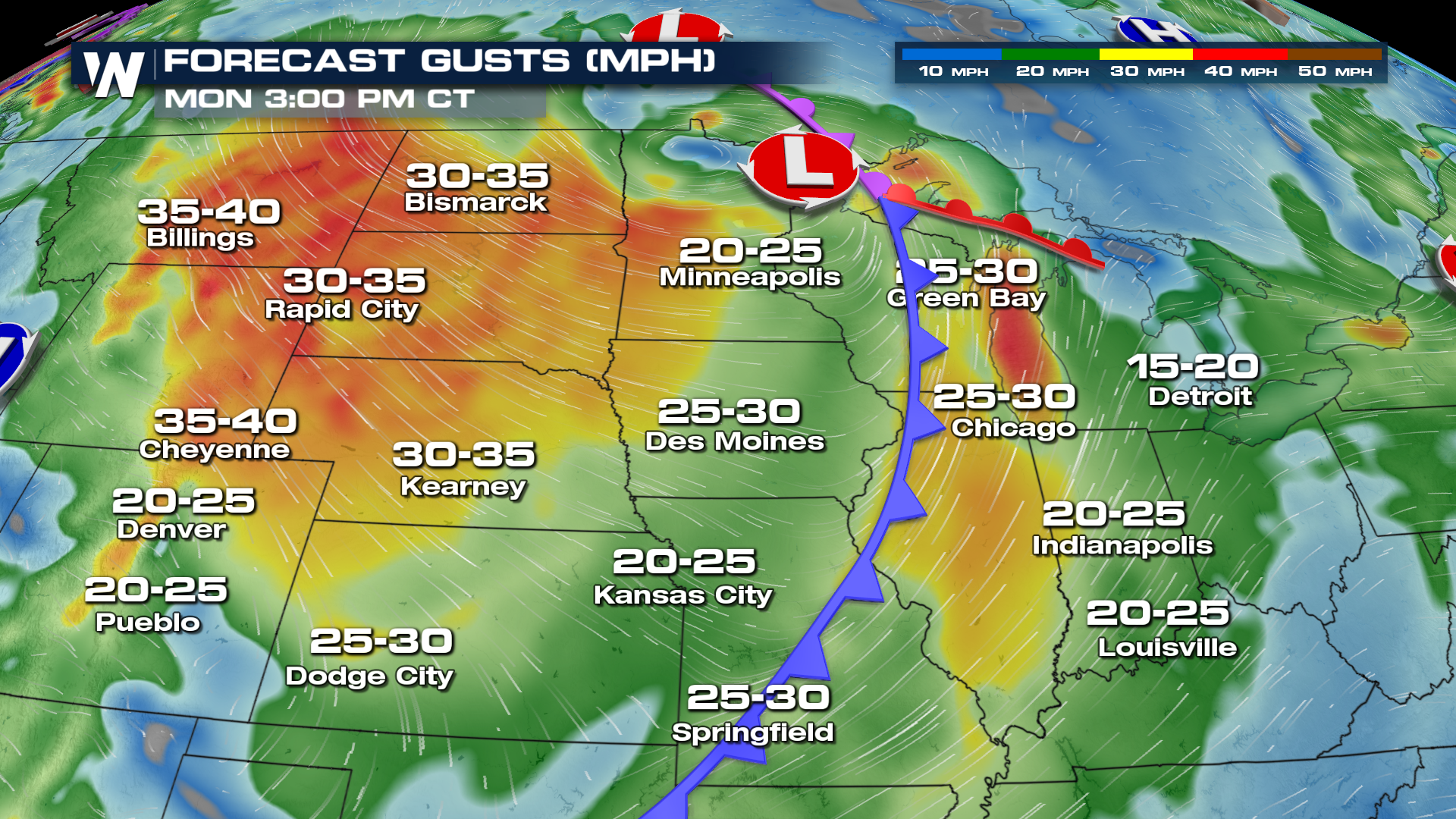 We're going in order of impact, with this system being the wind maker that will have any foliage howling. Gusts could top 40 mph in areas of the Upper Midwest on Monday, with 20-30 mph gusts around the Great Lakes Tuesday and Wednesday. In case you didn't learn you lesson with this trough's predecessor, secure the Halloween decorations. It won't clean out all of the foliage in these areas, but the days of enjoying the leaves are starting to get limited.