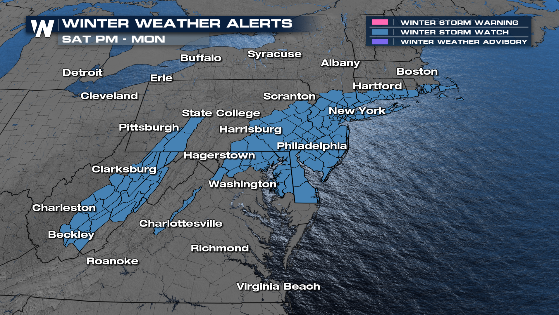 After initial differences, forecast models are beginning to come into better agreement about the position of the low staying close enough to the coast to bring heavy snow to portions of the I-95 corridor. As a result, Winter Storm Watches are now up for the Interstate 95 region into Monday.