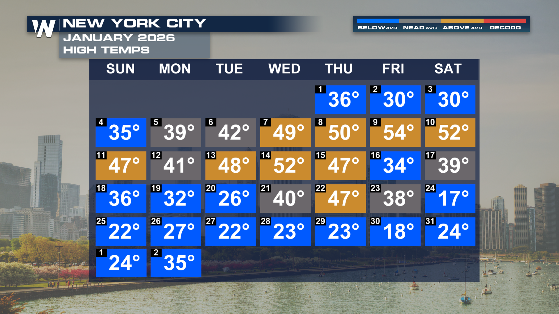 New York City for the end of January was below freezing for nine days in a row. By February 2nd, temperatures finally touched above freezing. Another cold spell is on the way for the weekend.