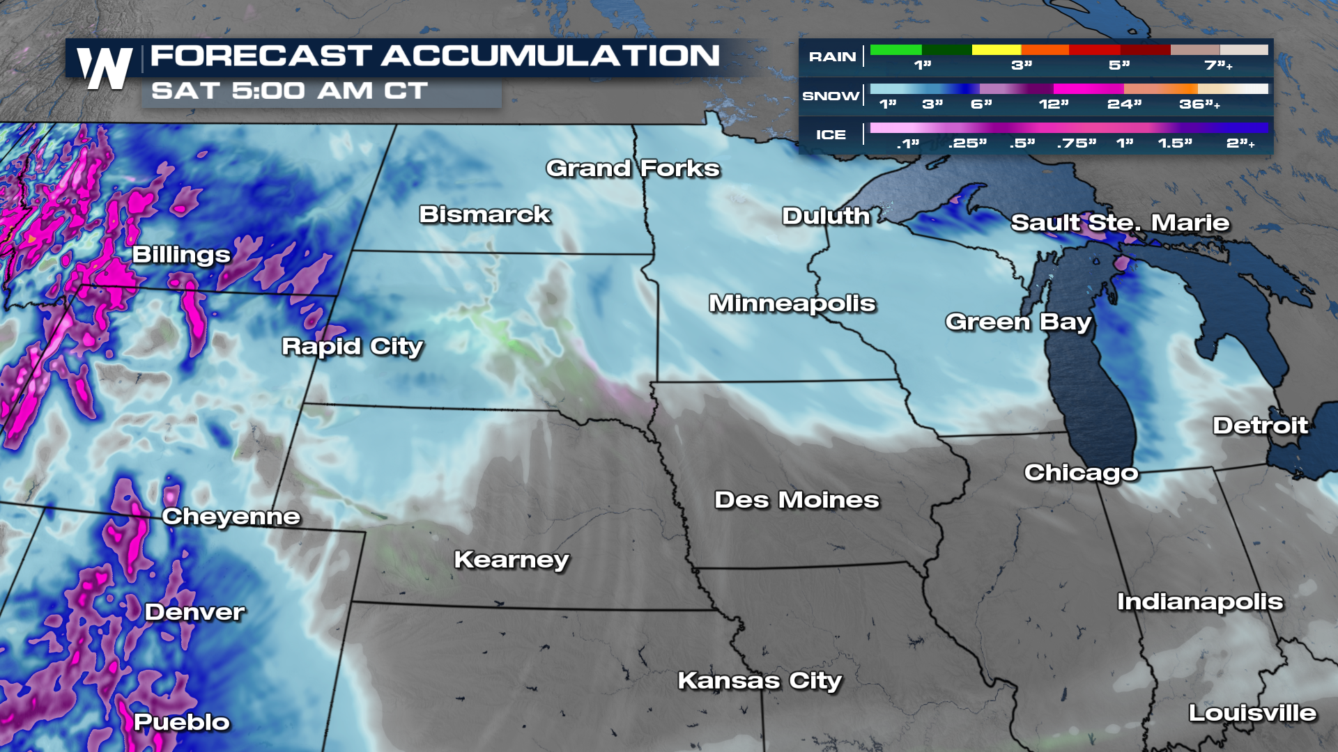These totals will pile up across the northern plains, with the highest totals staying out west across the northern Rockies.