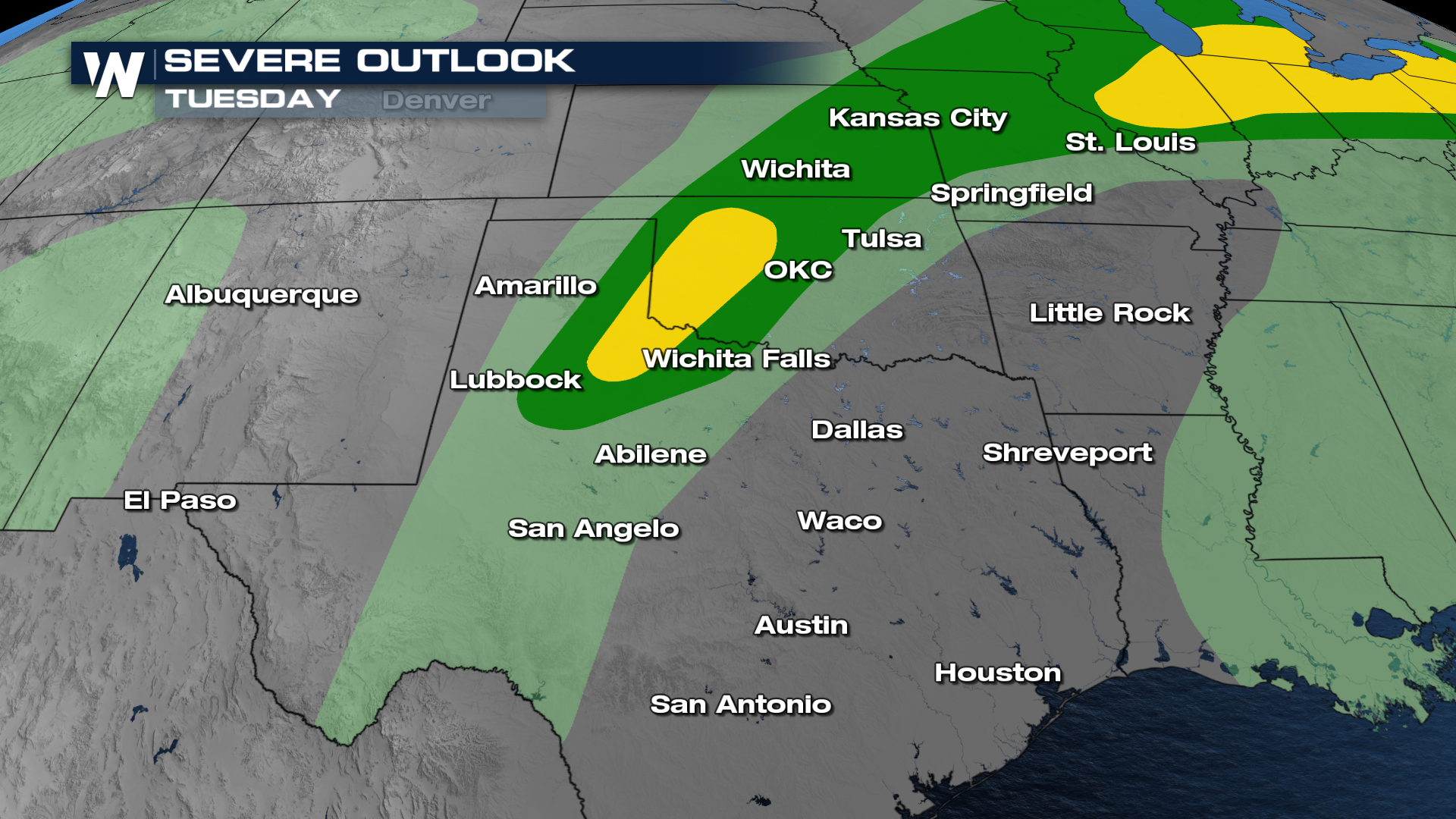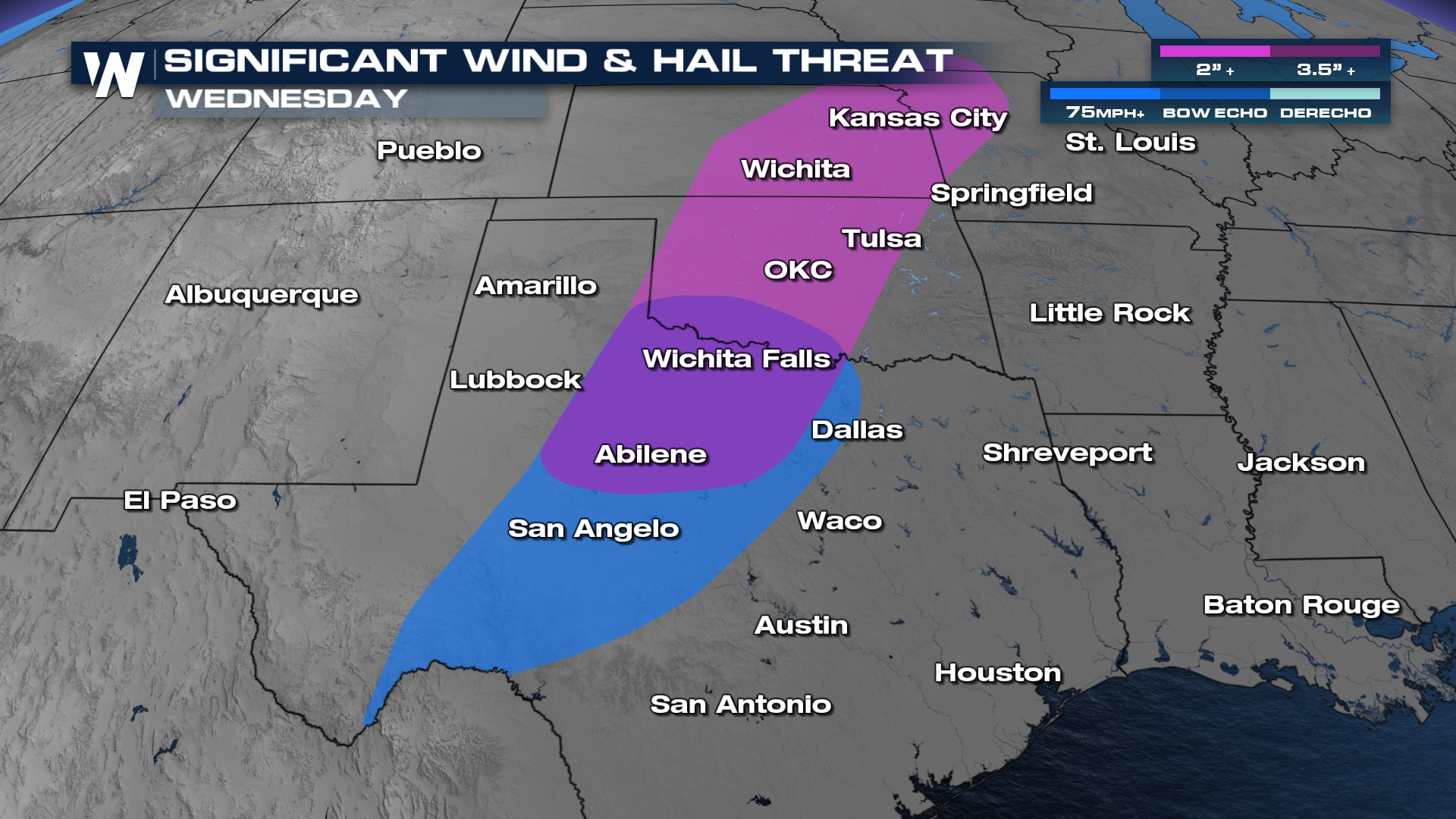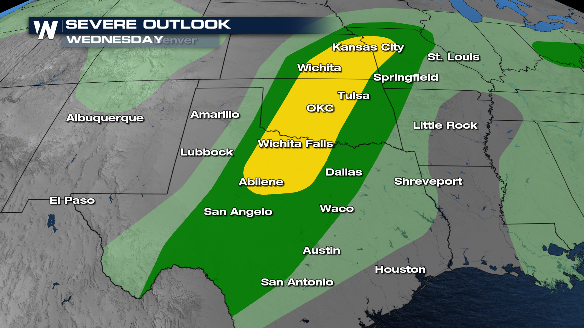 A SLIGHT risk has been issued for Wednesday afternoon and evening. Damaging wind, large hail and a few tornadoes will be possible. Storms look favorable to fire along the dryline and in dry line fashion they will fire as discrete supercells increasing the threat for large or very large hail.