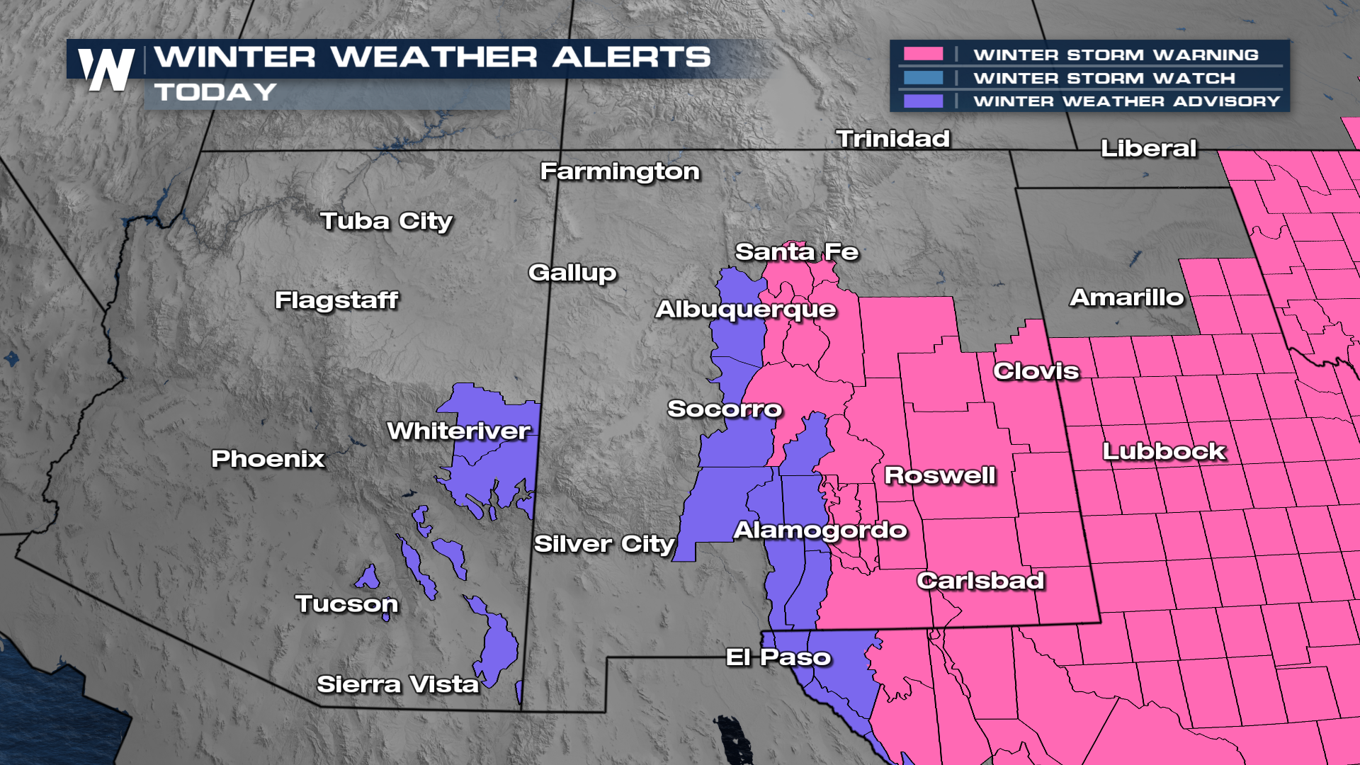 A wet storm system has moved in from the Pacific bringing heavy rain and snow back to these parched locations. Winter weather alerts remain in place for portions of New Mexico and Arizona lasting through Sunday morning.