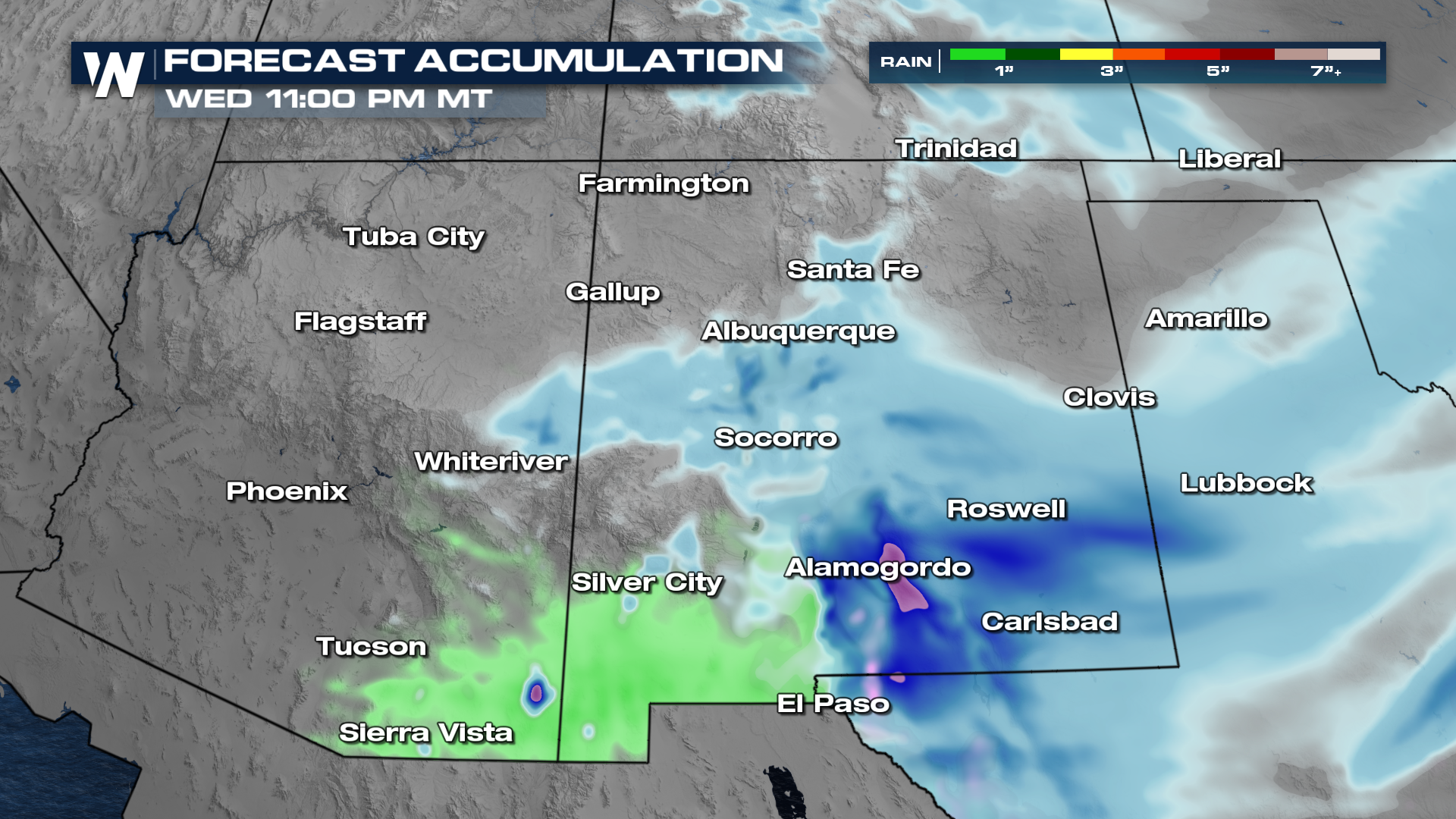 Some totals will still measure close to 6" in some areas like near Alamogordo, New Mexico. Rainfall totals still may reach half an inch in some spots in southern Arizona and New Mexico. However, most of this precipitation should be on it's way out by Sunday afternoon.