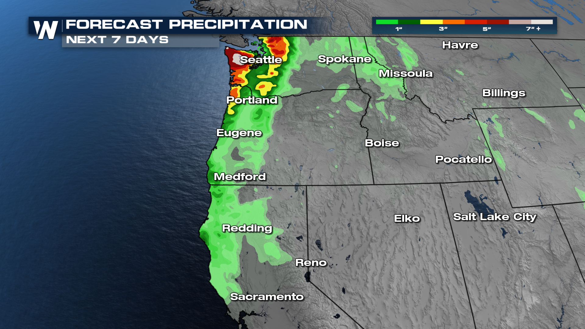 As with most repeated rounds of rain, flash flooding will be a concern. Thankfully, this will only target the Olympic Peninsula. A few inches of rain will be possible over the next 7 days.