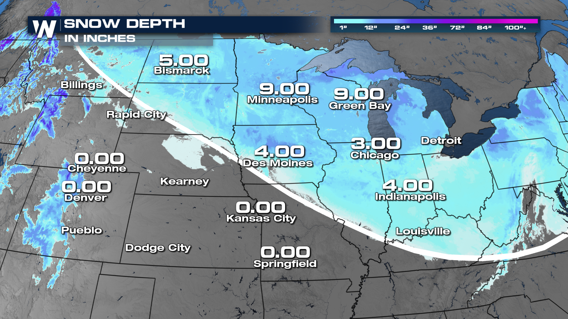 Currently, from recent clipper systems there is a decent snowpack on the ground across these states.