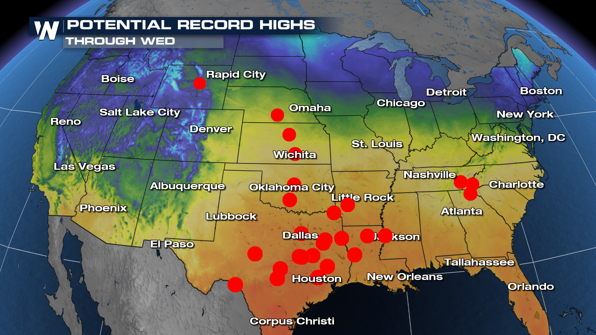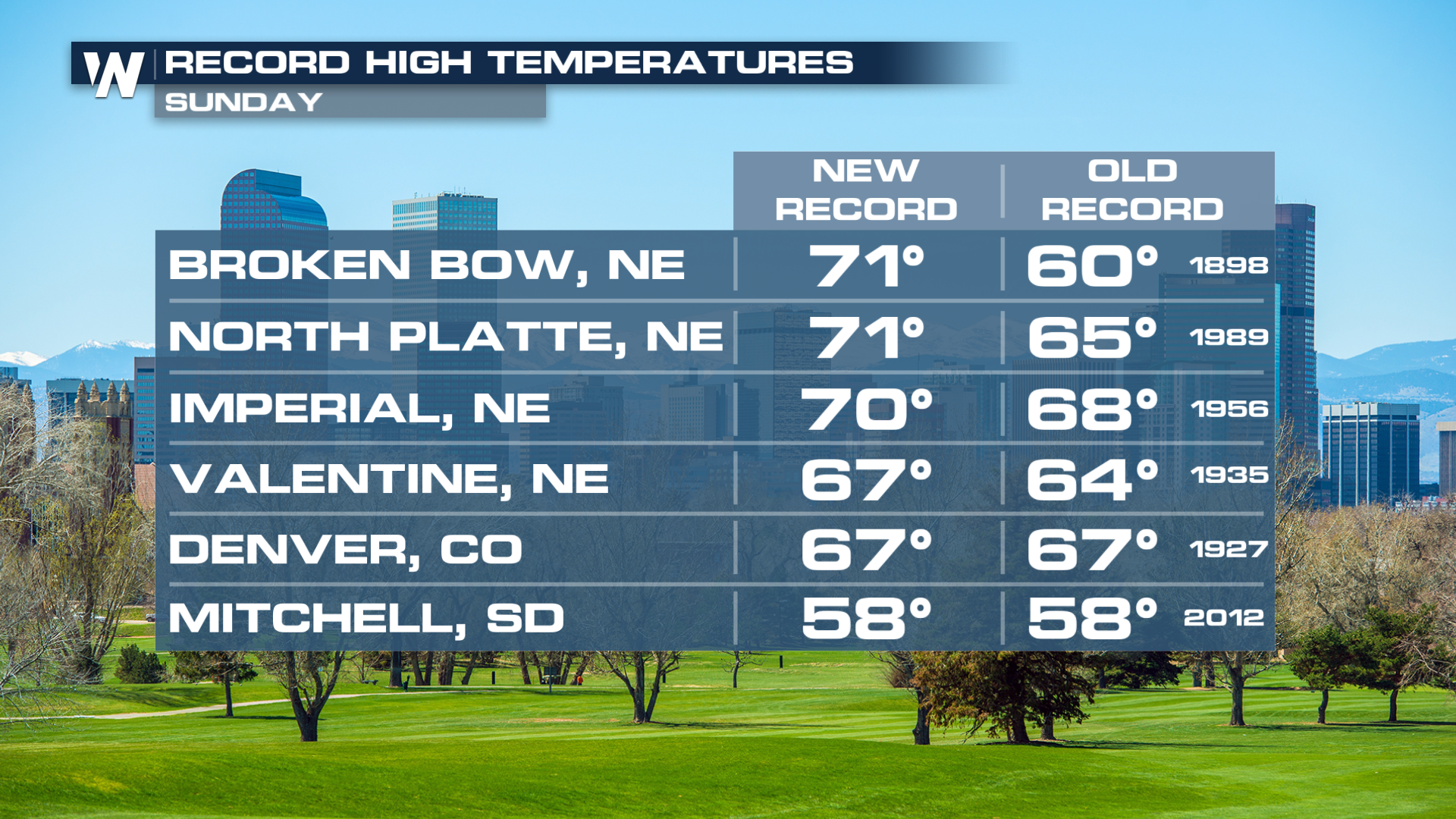 The record potential will generally move from west to east across the country, along with the upper-level ridge. Records fell on Sunday across the High Plains, including Denver, which tied a record reaching 67°.
