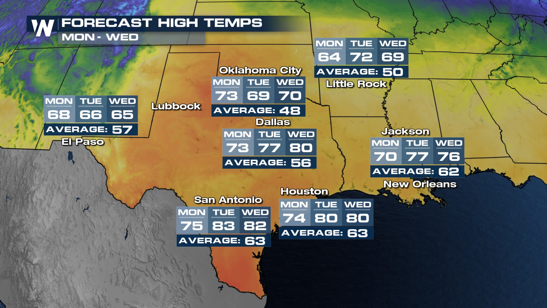 Temperatures in Texas were downright hot this weekend. Down in the Lower Rio Grande Valley, temperatures soared into the 90s! Plenty more records are expected to fall across the Lone Star State in the coming days, especially on Tuesday and Wednesday.