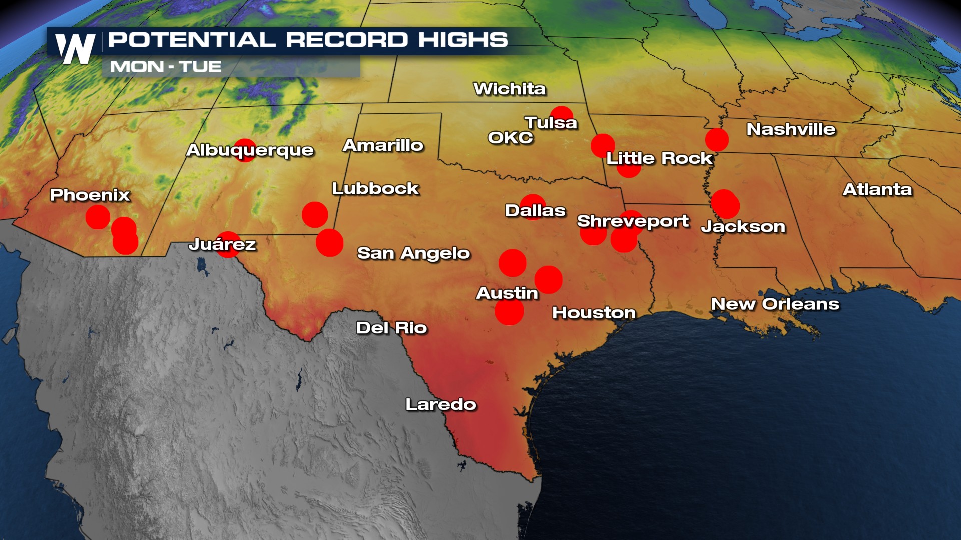 Temperatures have already entered record territory in locations like El Paso, reaching the upper 80's Sunday and Monday.