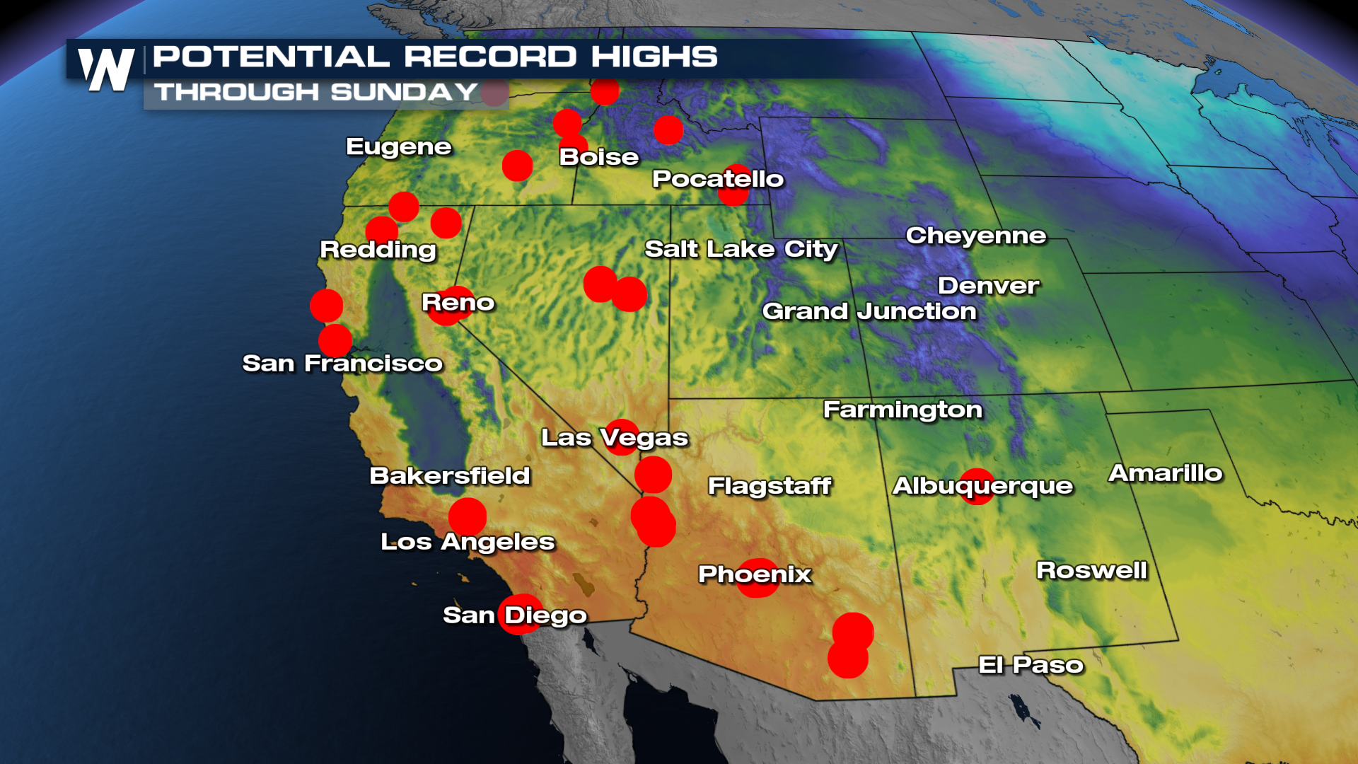 High temperature records up and down the western third of the country could fall through the weekend, as the upper-level ridge is forecasted to stubbornly remain in place over the coming days!
