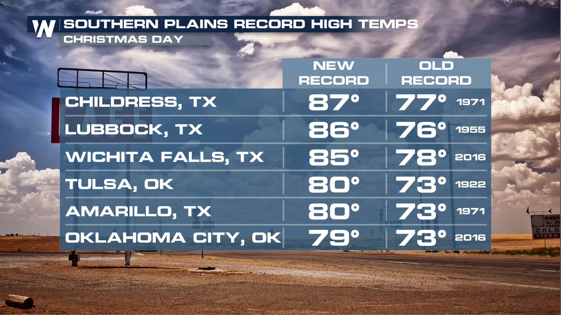 Unseasonably warm temperatures continue to prevail in much of the central and southeastern United States, as an area of high pressure maintains the jet stream north, allowing warm air to build up. Widespread record highs have been noted for days now, with Christmas being a particularly warm day down in Oklahoma and Texas!