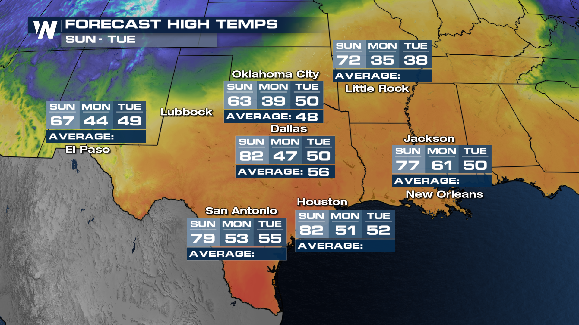 The South Central will remain firm in the above-average temperatures through the weekend, but here too temperatures will crash down by the beginning of next week.