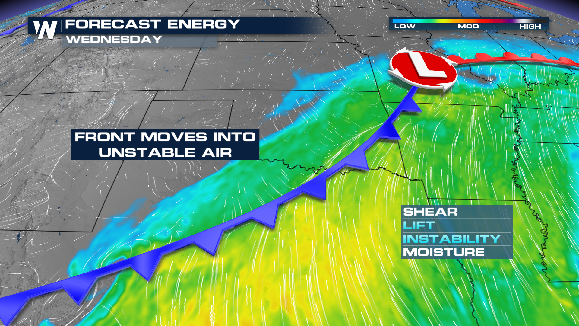 A fairly meager front will slide into the area as temperatures climb once again this afternoon. With some areas, closing in on record highs, it doesn't take much of a front to cause problems. As that warm air runs into the frontal boundary, storms are expected to fill in from north to south throughout the day.