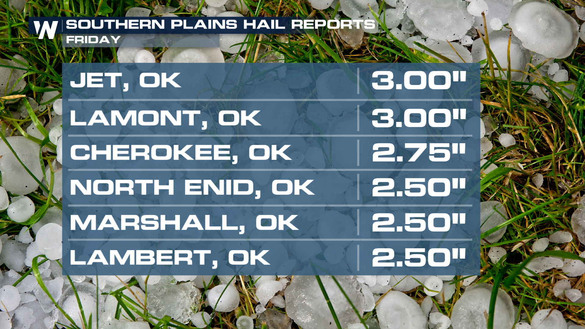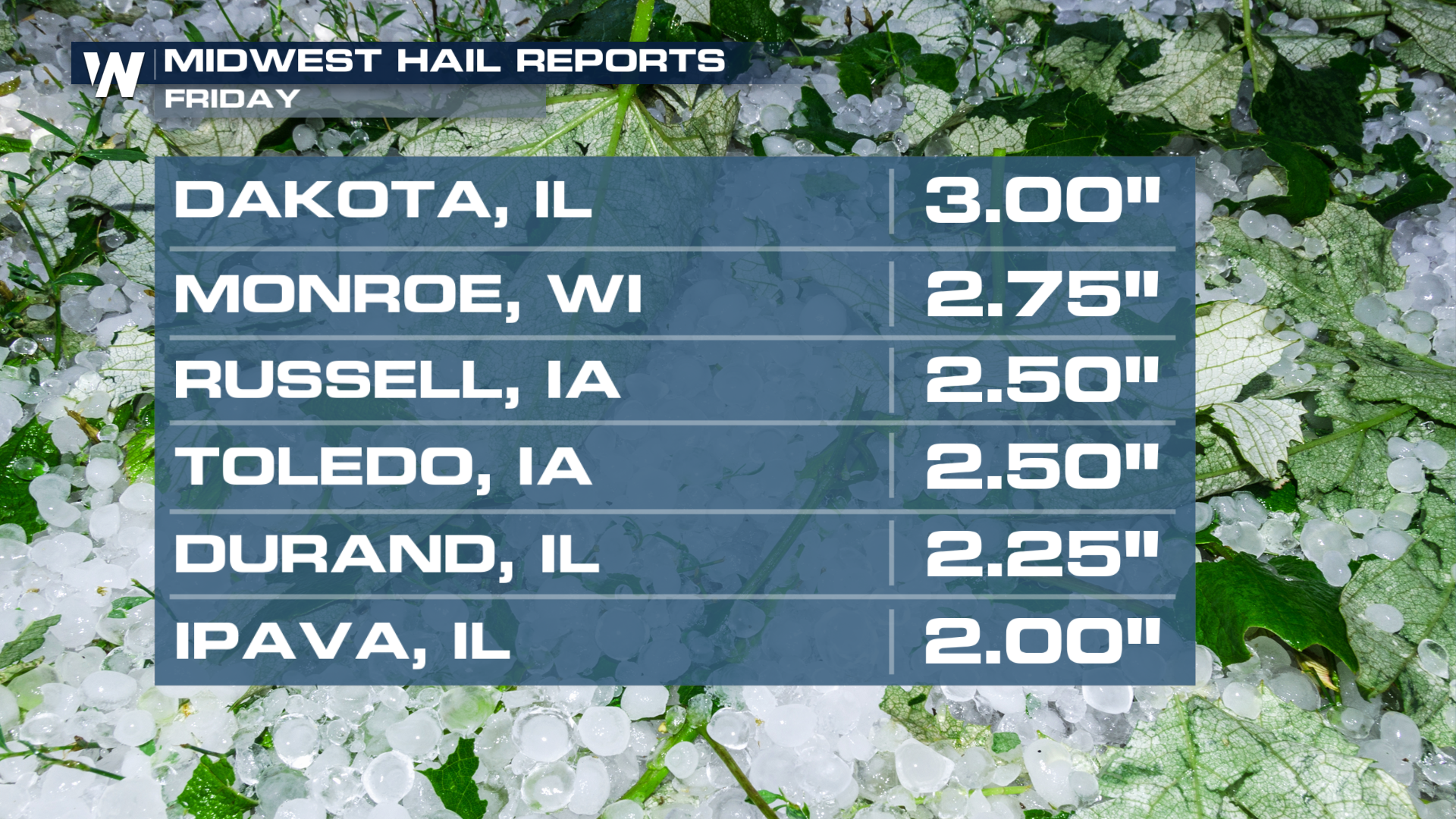Hail topped 3 inches in diameter (bigger than baseballs) in both the Midwest and Plains on Friday, with many significant hail reports (over 2 inches).