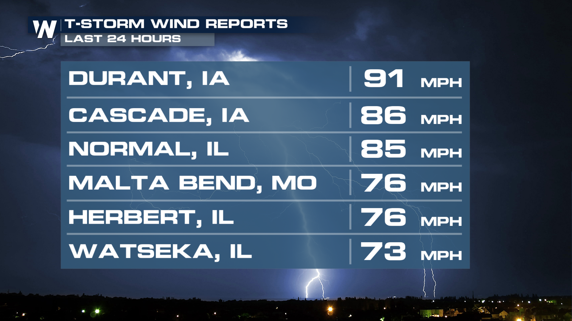 Hurricane force wind gusts also verified on Friday, with at least 5 reported over hurricane strength in the Midwest. Squall lines formed late in the day to produce large bowing segments.