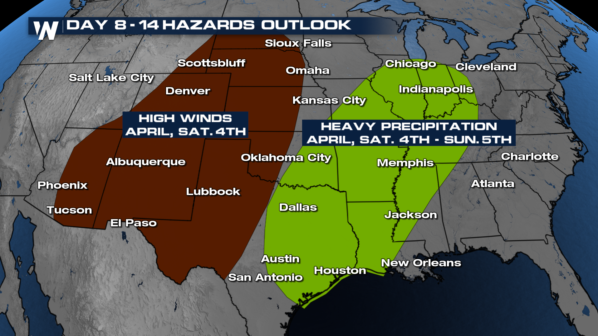 The CPC is highlighting a large area from the Great Lakes to the Lower Mississippi for heavy rain that could lead to flooding late in the week. Severe storms will be possible in the Plains, Midwest, and South as well.