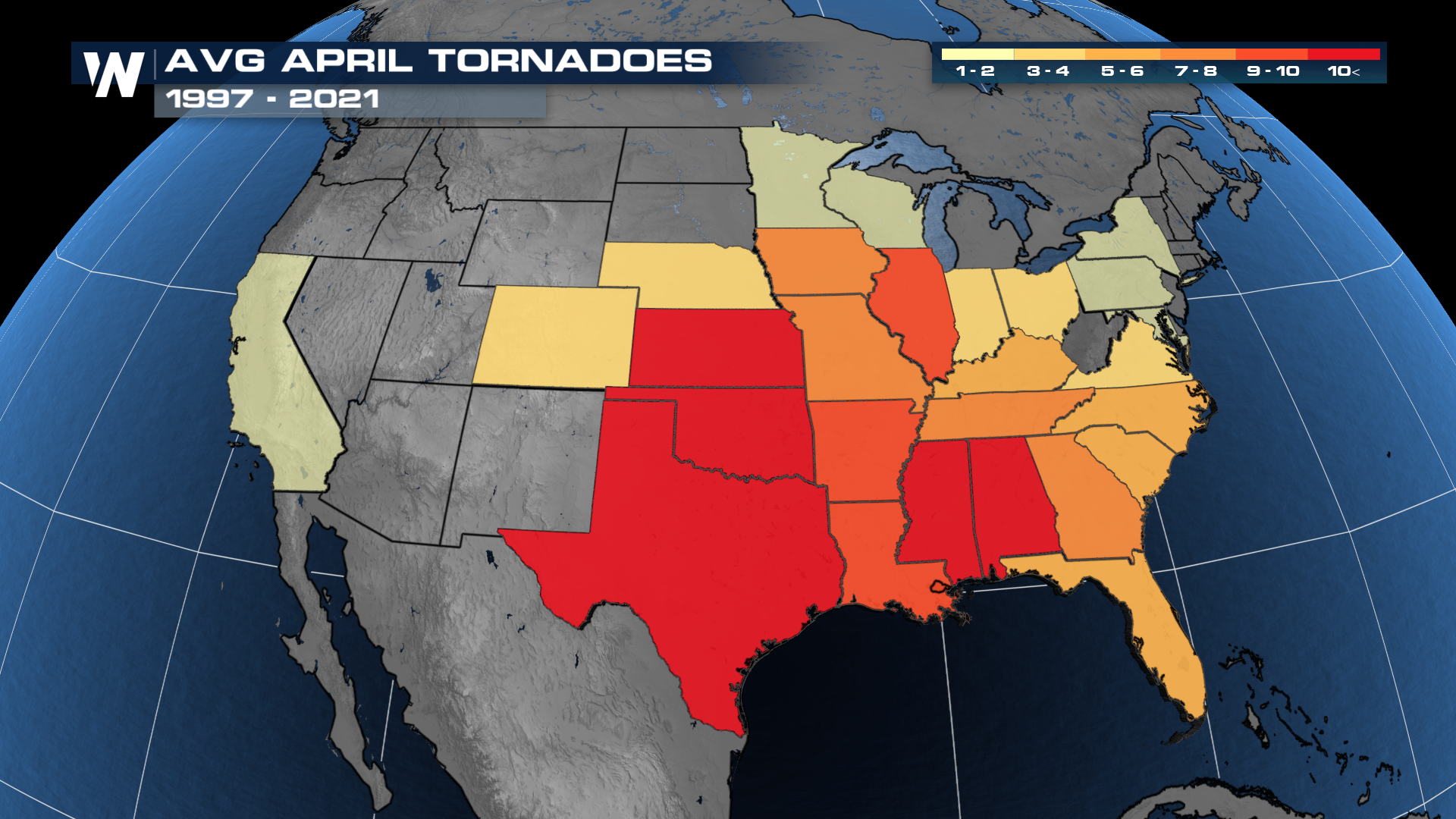 While it's still a bit too early to determine locations and threats for this next event, climatology tells us where tornadoes are more likely heading into the month of April.