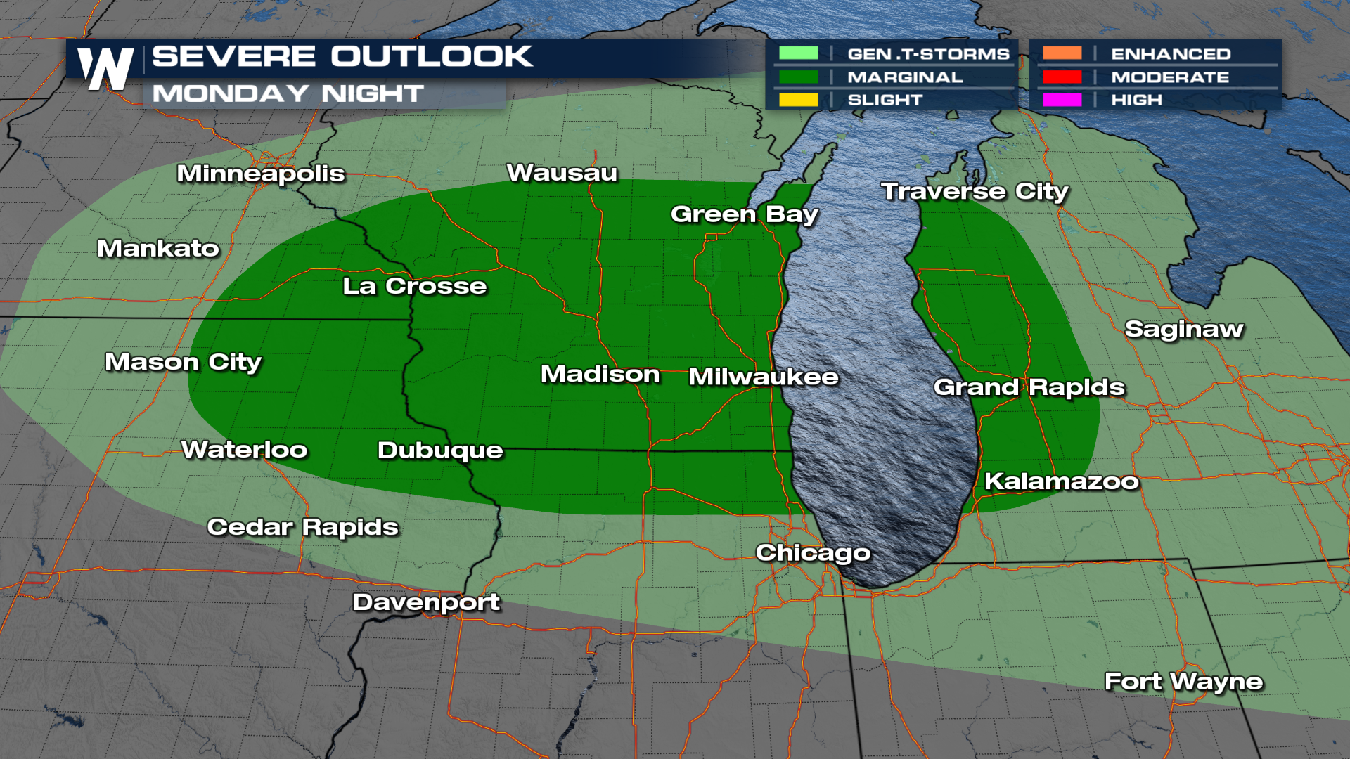 The SPC has already highlighted areas from Iowa through Michigan for severe weather potential starting late in the evening on Monday.