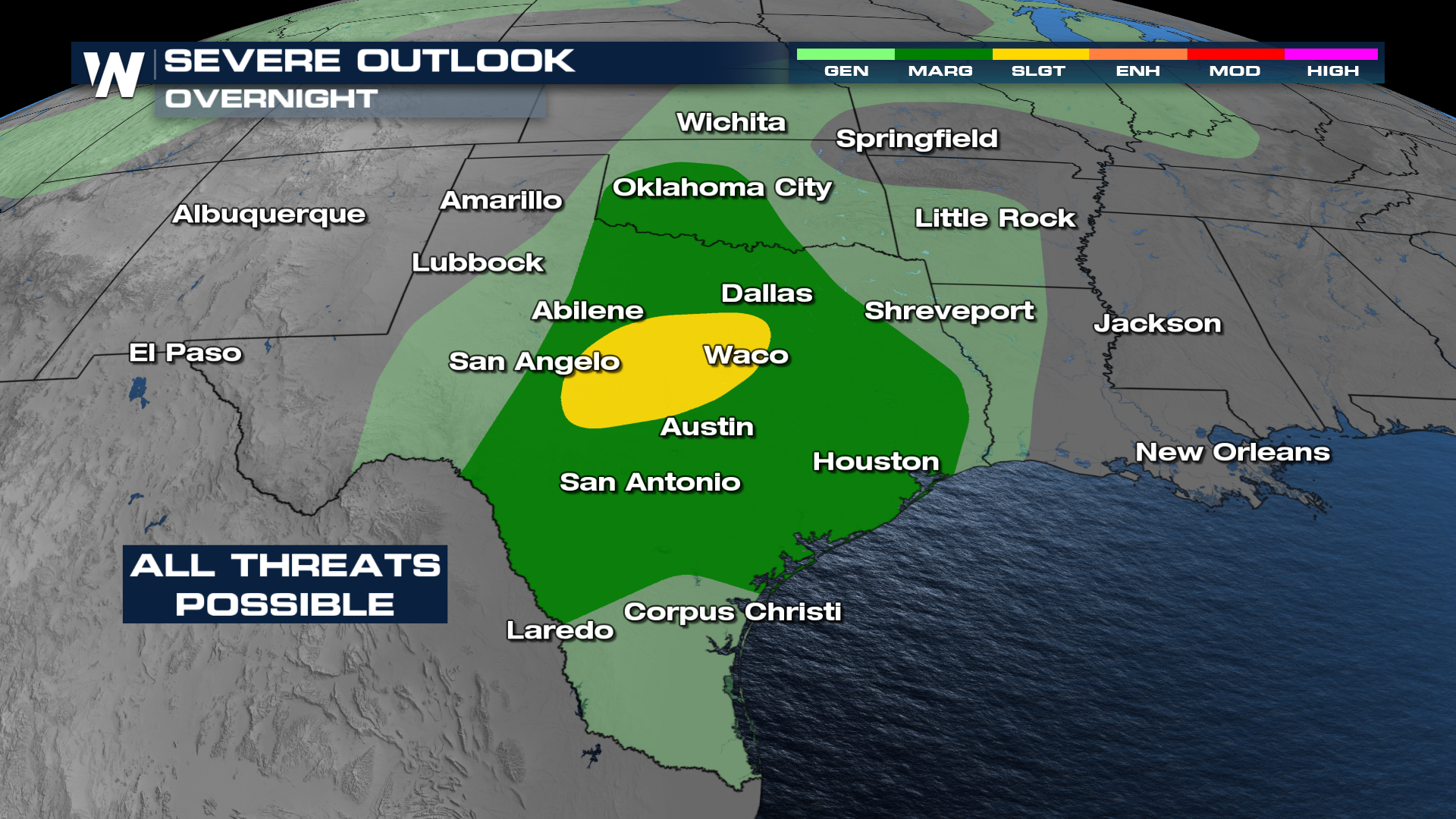 Storms have fired up in west Texas and are expected to continue moving into the I-35 corridor through the morning hours. Models anticipate these storms clustering together as the drag through into the morning.