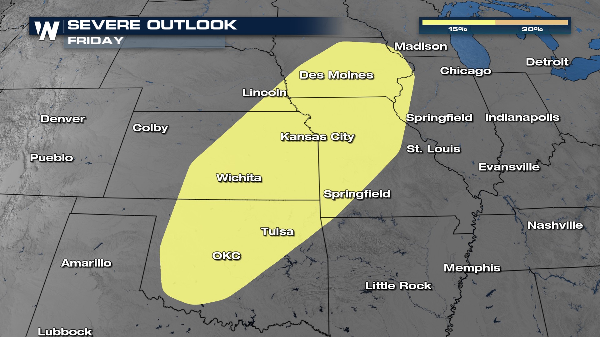 Right now, the Storm Prediction Center is more concerned with Friday from Iowa to Oklahoma. This early on, all modes of severe weather are still on the table, but there's plenty of work to be done concerning the details. Get in the habit of checking back with the forecast if you live in these areas, although that might be already formed given the severe chances preceding all of this.