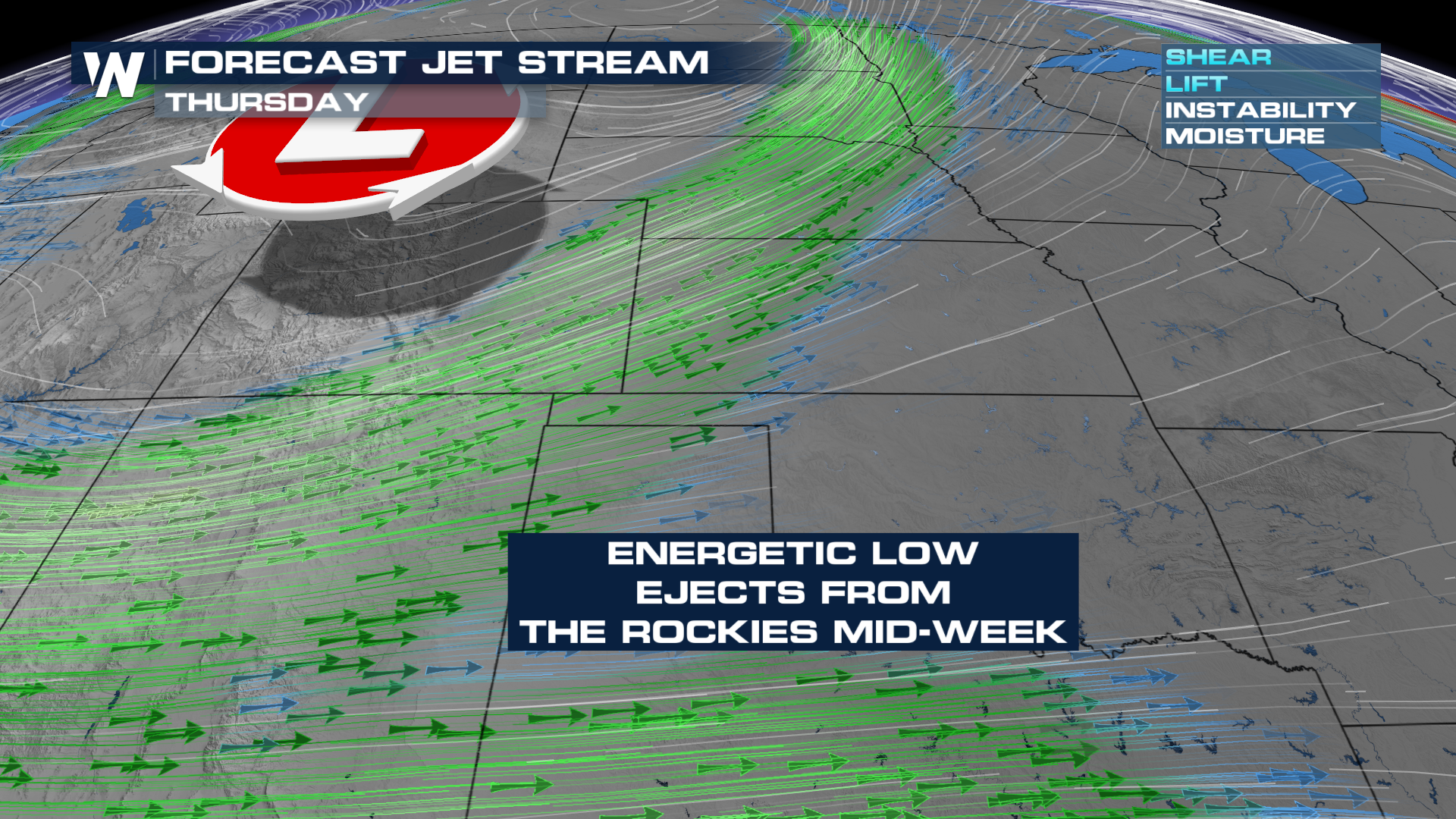 Meanwhile, at the surface, heat and humidity will build during the afternoons, creating an unstable atmosphere. Storms that form will strengthen quickly!