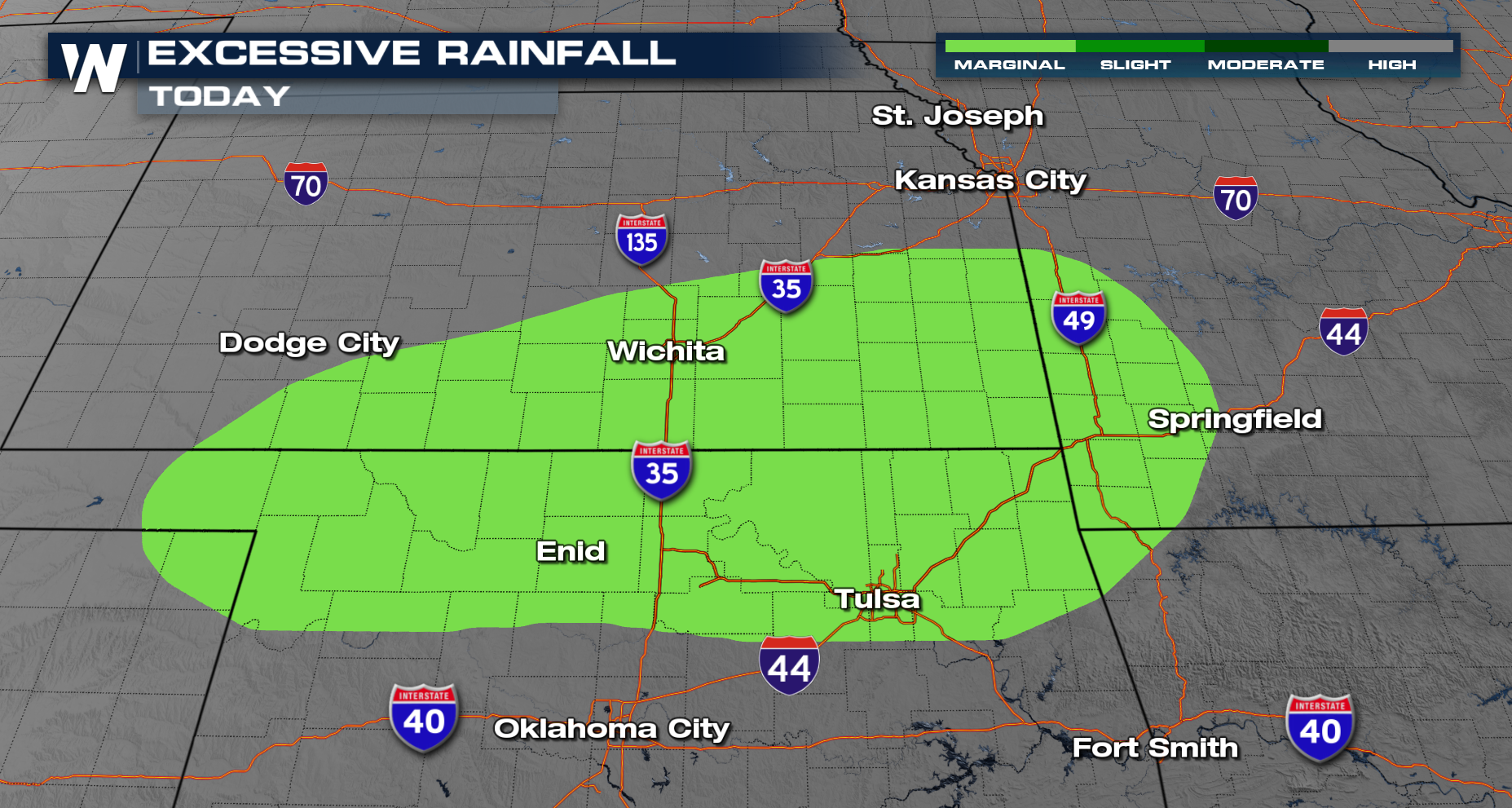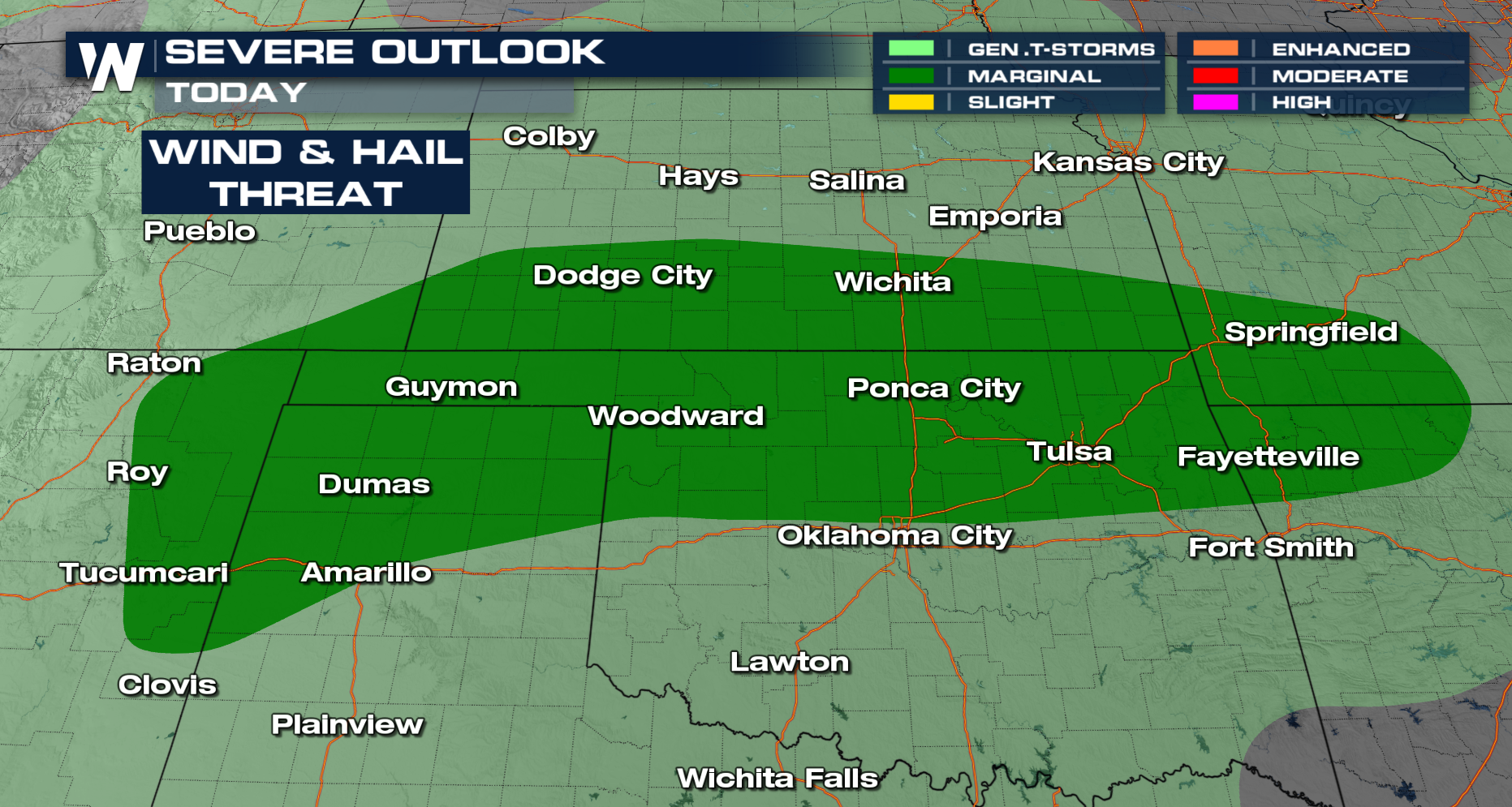 Large hail for Kansas last night. Thursday was day one of a multi-day stretch of severe weather across the plains. Storm potential will continue to ramp up as we roll into the weekend and next week. As for Today the threat stays relatively isolated to KS & OK.