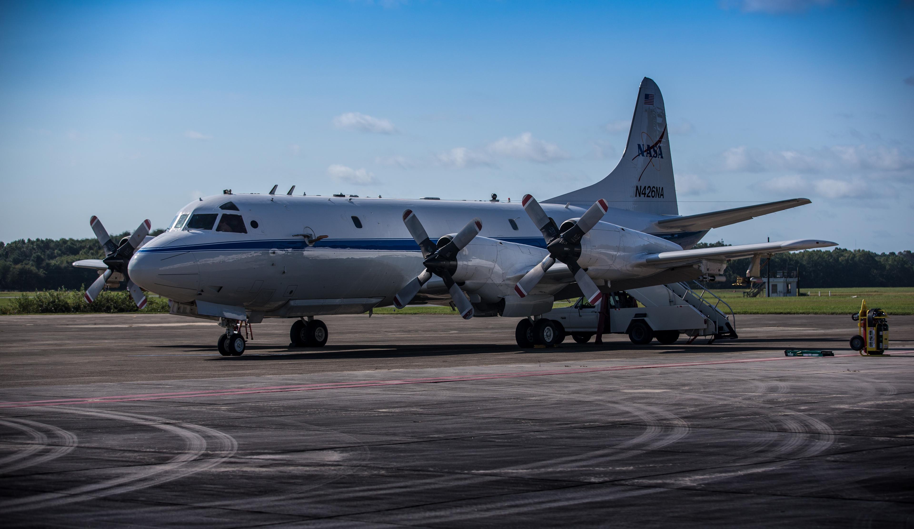 NASA's P-3 research aircraft departed Wallops Flight Facility in Virginia for the ORACLES deployment on Sept. 21, 2018. Credit: NASA]