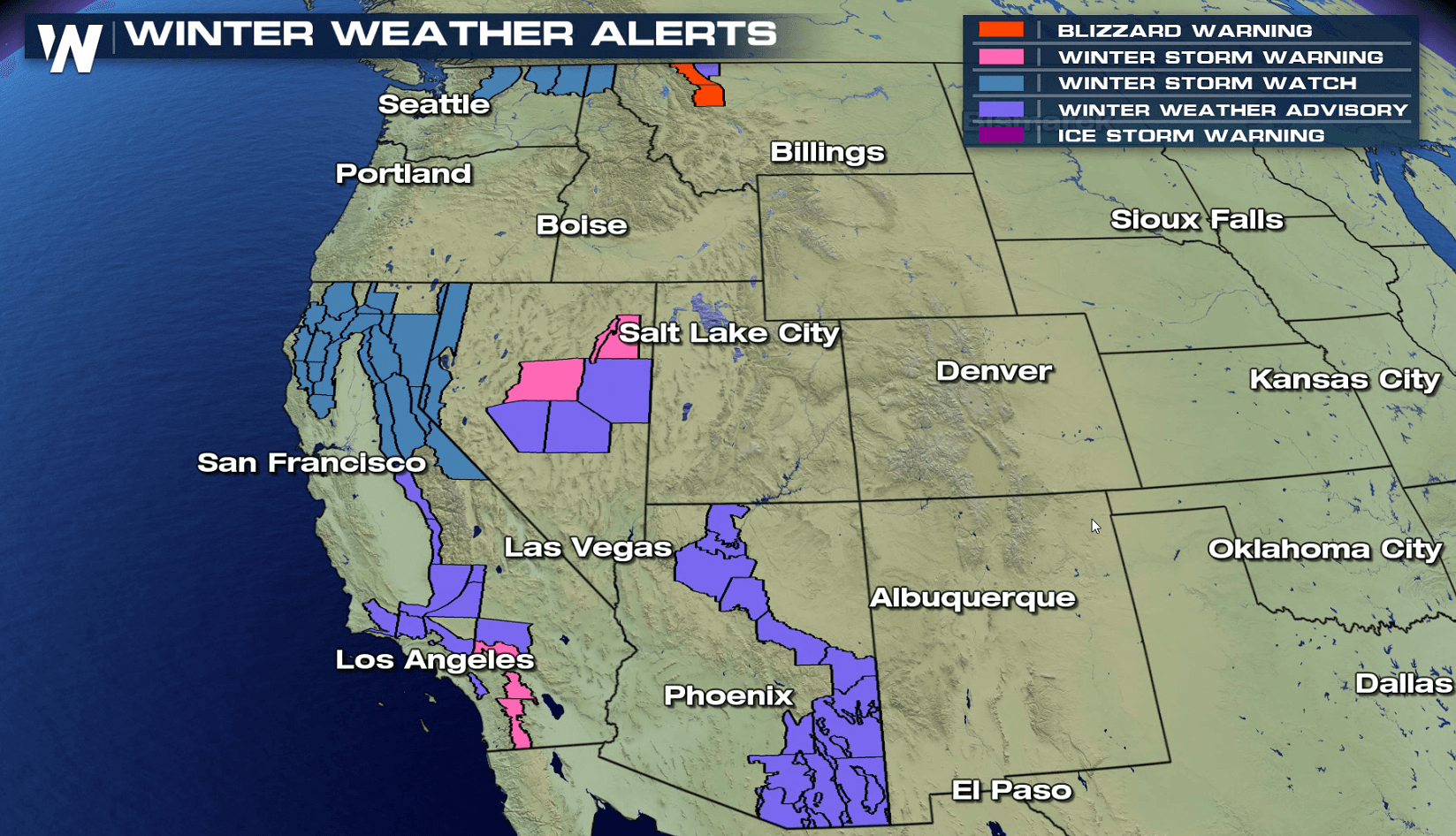 Snow is also expected to spread into the Cascades, Tetons and Wasatch as a rich feed of moisture pushes in from the Pacific Ocean. With wind gusts of 45 to 65 mph, white-out conditions and significant drifting snow is expected along the Rocky Mountain Front in Montana.