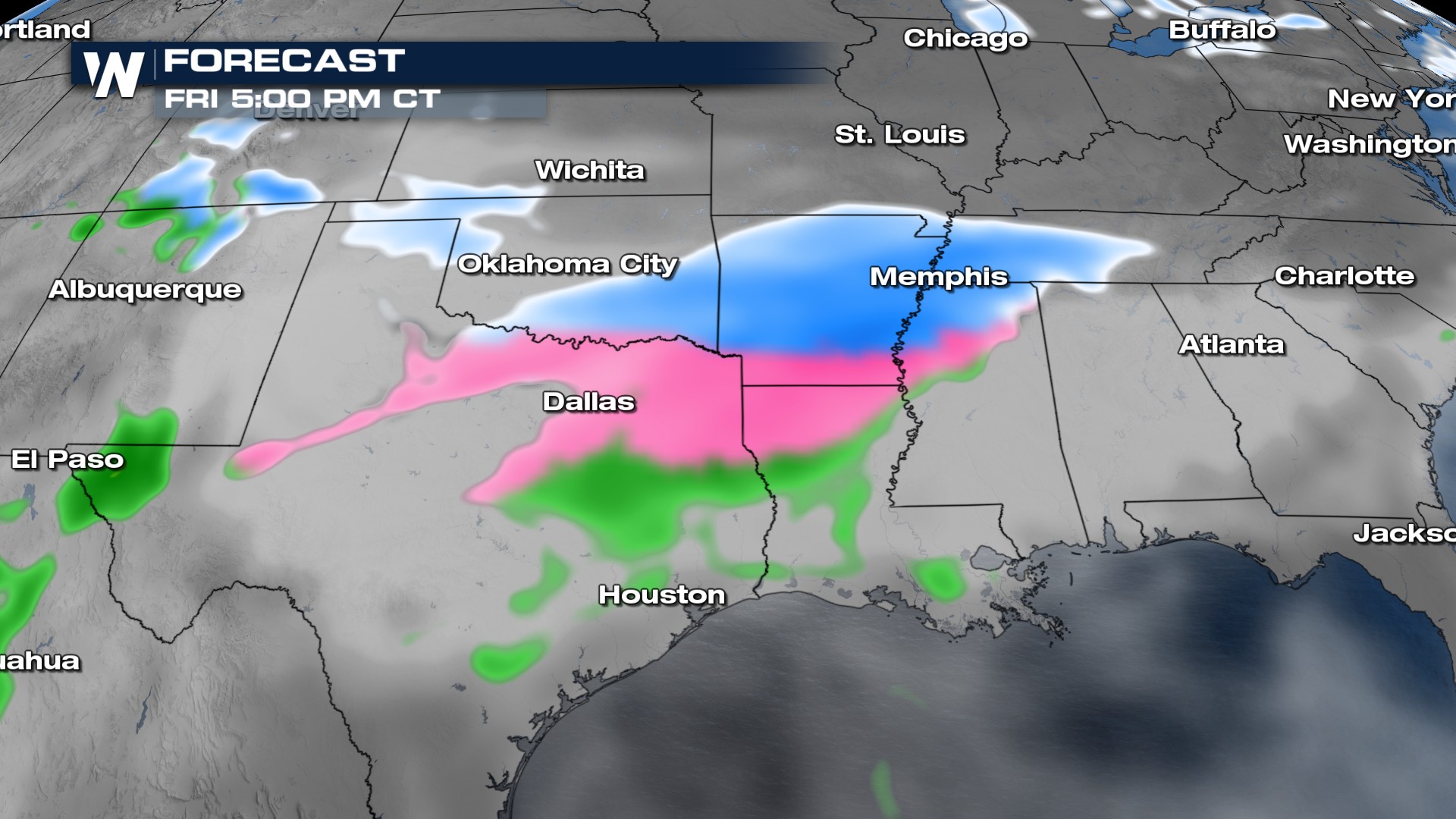 Air that's normally locked up around the poles looks to break off from the region. From there, it will slide southward, invading the southern states. Sub-freezing temperatures will settle in behind this Arctic front, potentially as early as Friday. At the same time, a disturbance will roll onshore from Baja California, providing the lift and moisture needed to cause problems.