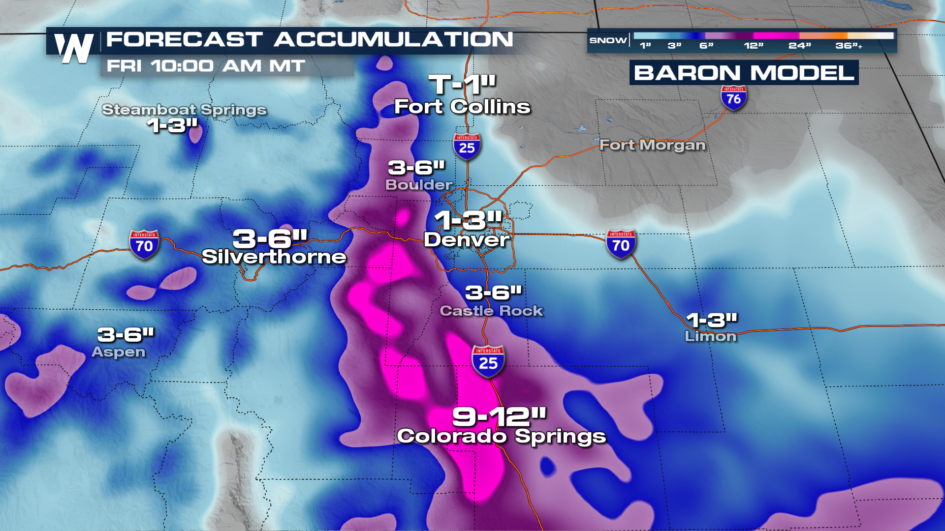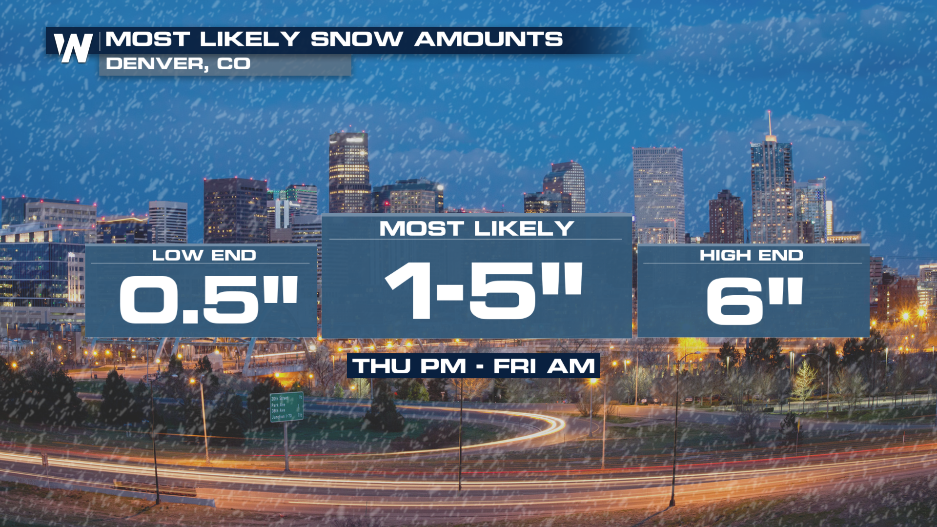 Models are starting to get better correlated on what the outcome for Thursday's snowfall is. Temperatures look to be a bit cooler, cool enough to support upwards of 1-5" of snow in the Denver area.