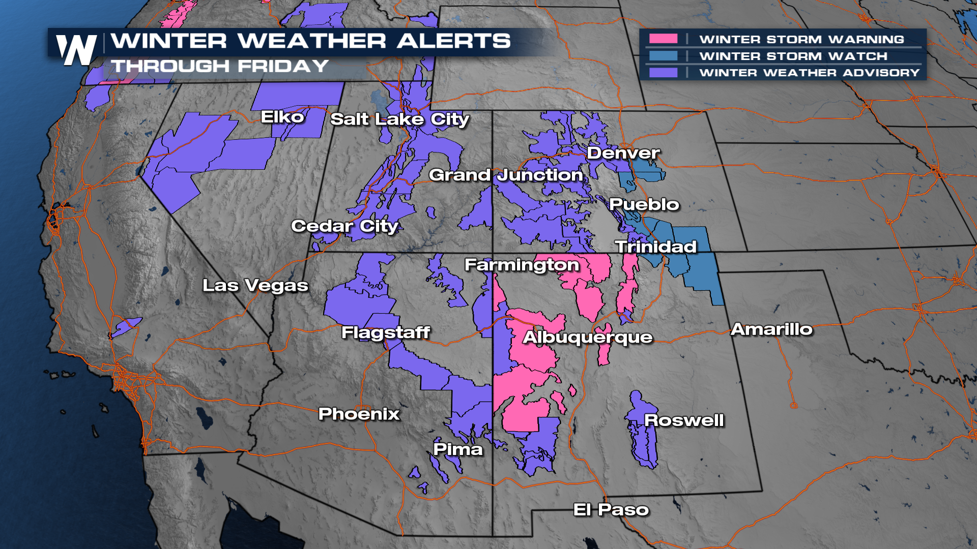 It's been a slow start to the ski season for a lot of our resorts out west, so any snow in the forecast should bring a little hope to the skiers and boarders out there. Winter weather alerts have been issued across the Four Corners through Friday. Totals will vary based on elevation.