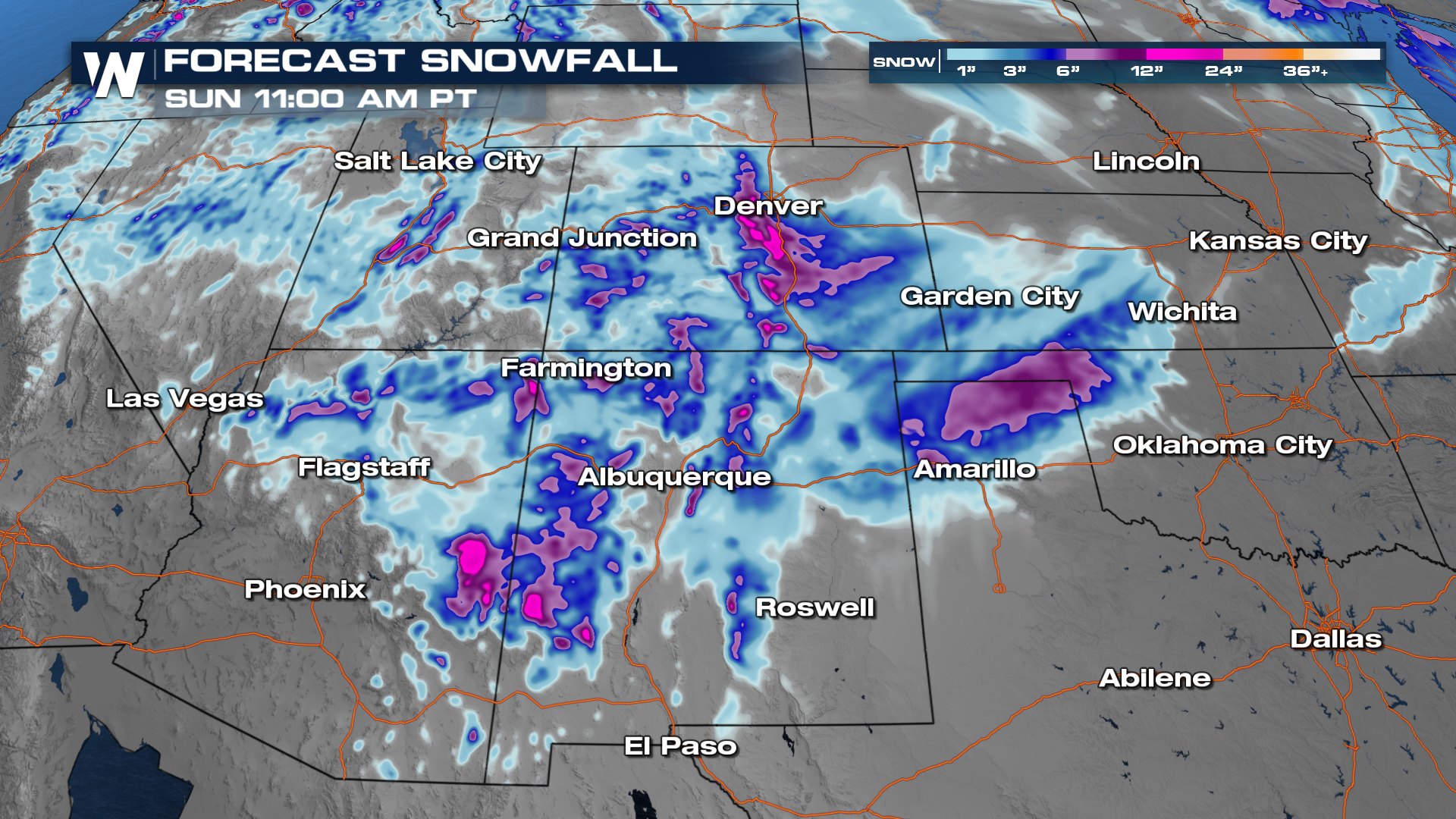 Across Arizona and New Mexico, we've been getting rainfall, and that will continue overnight. In the meantime, snow will start to pile up in Colorado, Utah, and the higher elevations of the southern Four Corners.