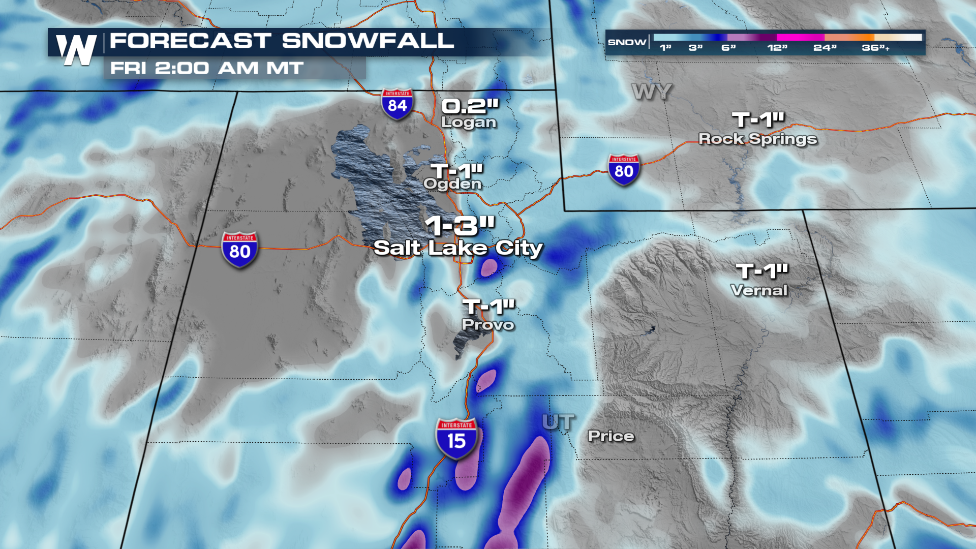 SLC has seen barely any snow this season. So far, we've only had 0.1" of snow downtown. The forecast from the National Weather Service has a forecast of 1-2" in the city.