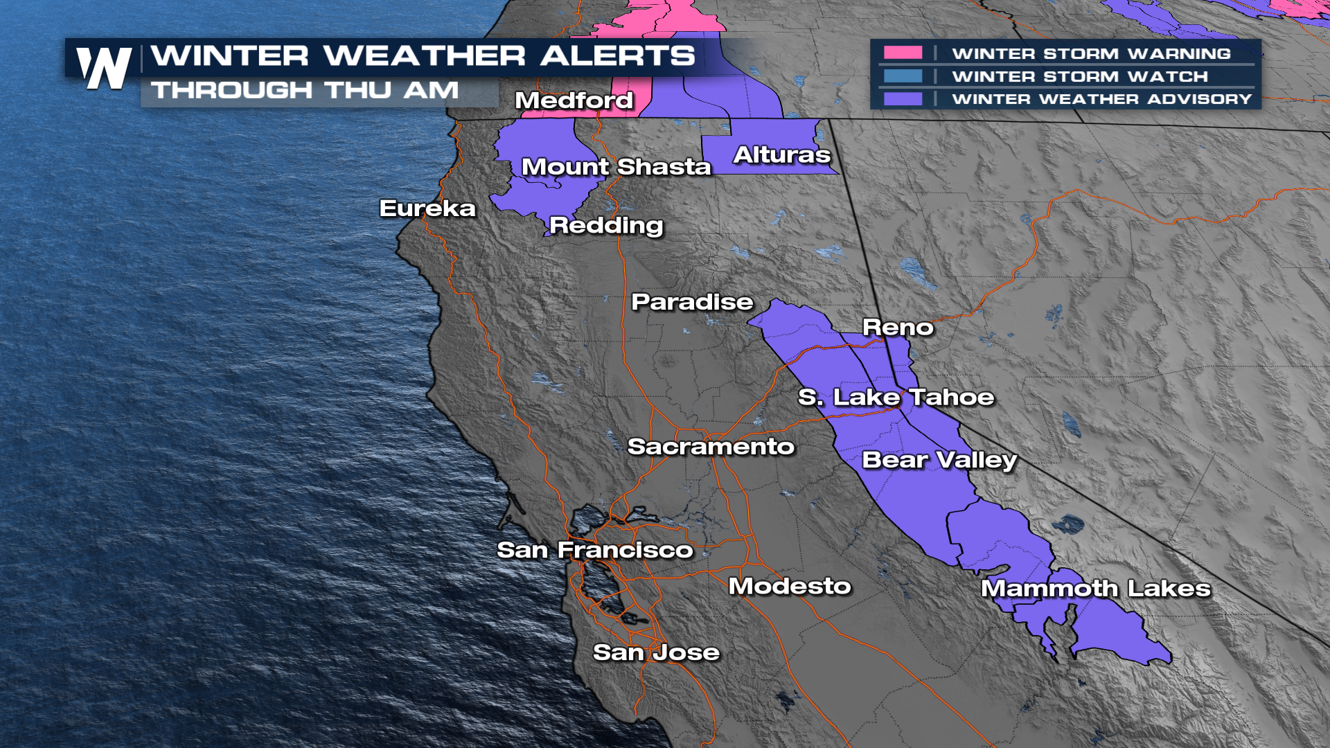 The Sierra Nevada Mountains also have winter alerts in place that will continue through most of Thursday morning. Travel delays and slick roadways are likely. Stay safe as this much-needed moisture arrives across the higher terrain.
