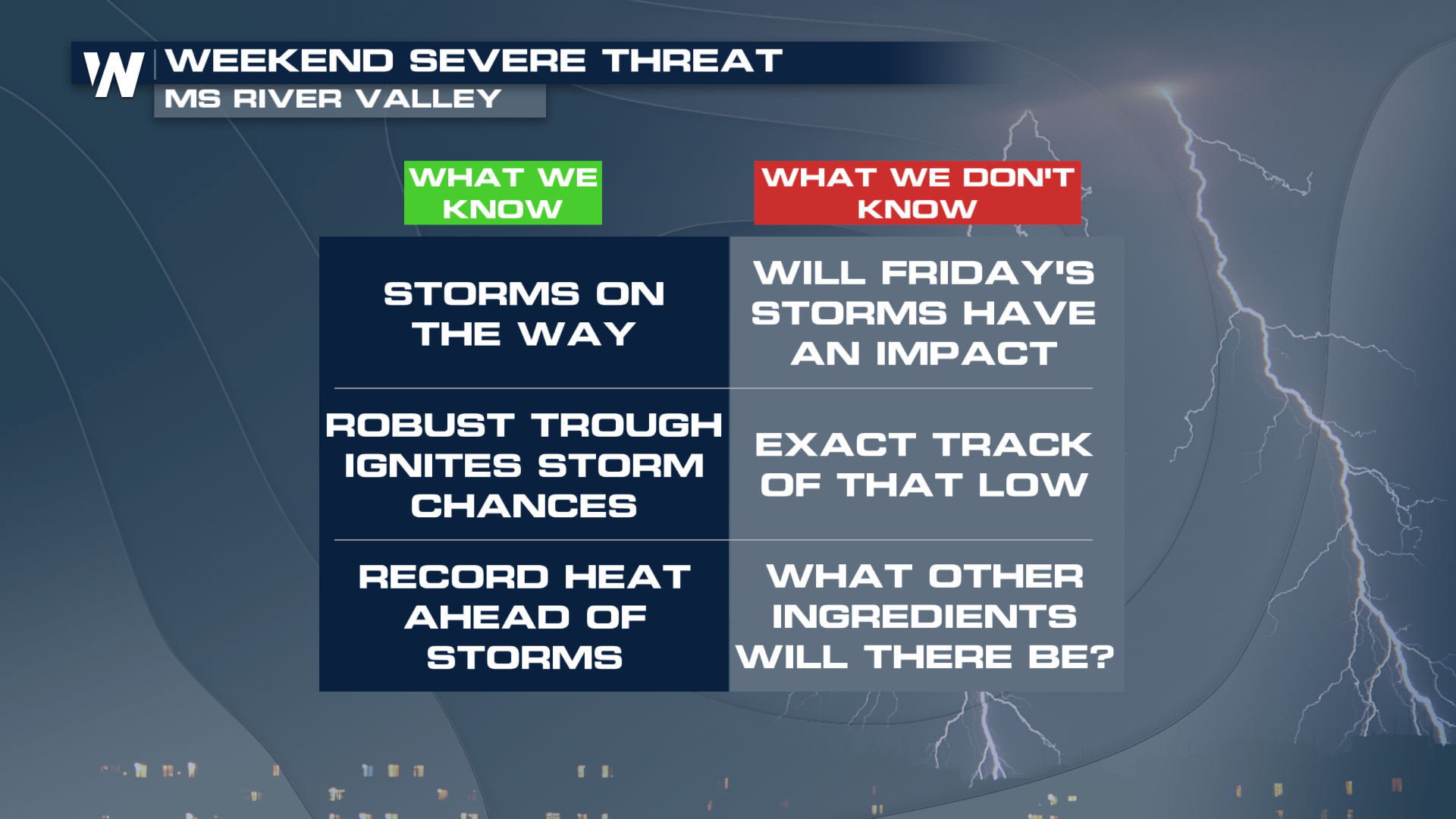 Are there going to be storms? Likely. How strong to potentially severe will they be? That's up in the air. It's still a little too early to tell which fine-scale ingredients will be in play.