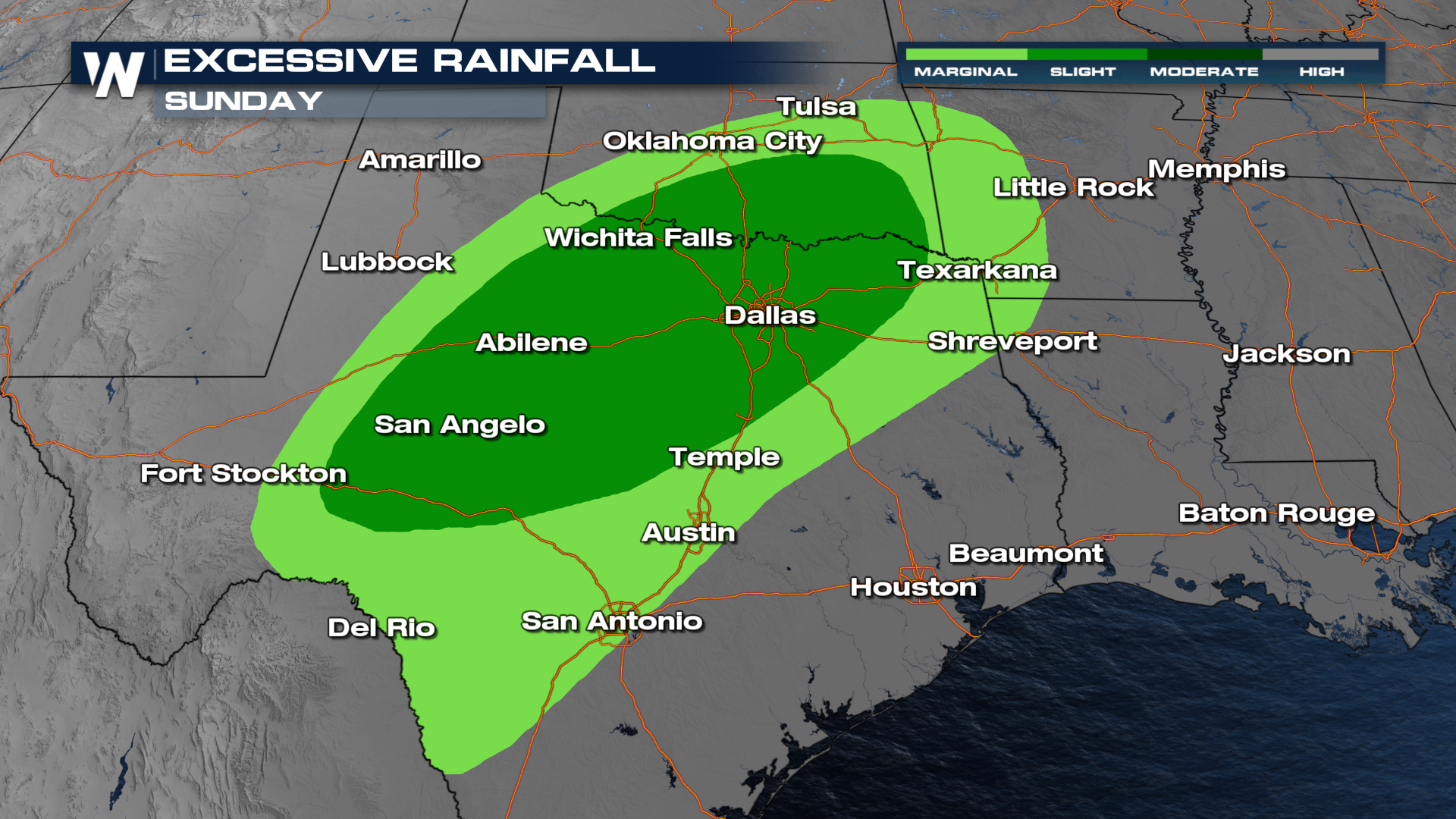 Timing the StormsA few strong storms are possible starting Sunday morning, falling over Texas Hill country. This will mean we se the flash flood threat develop early as well, as slow moving storms begin to lift north toward the Panhandle. Scattered storms continue to push east along the warm front across northern Texas and Oklahoma, before the strongest storms are expected to develop in west Texas in the evening. These storms, driven by the cold front, will have a better chance to reach severe weather limits as they push east across the Red River Valley overnight into early Monday. Monday's storms look to start near I-35 in northern Texas before moving east into Louisiana and Arkansas by the afternoon and evening.