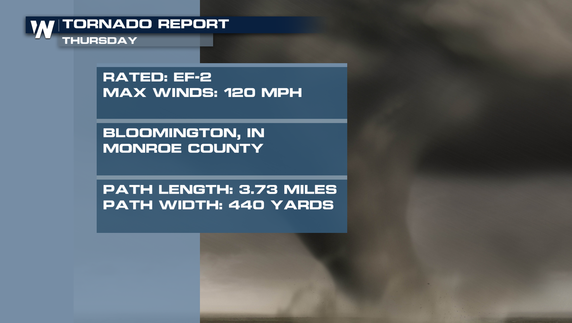 A powerful storm system tore through the Ohio Valley on Thursday evening into Friday Morning. Warmer air and increasing moisture led the Storm Prediction Center to highlight the region for an enhanced risk of severe weather, even noting the potential for strong EF2+ tornadoes and widespread damaging winds. The atmosphere responded accordingly, with discrete supercells developing ahead of a larger line of storms, a setup often associated with more intense tornado potential. A few tornado surveys were completed including an update on the EF2 tornado did went through Bloomington, IN.