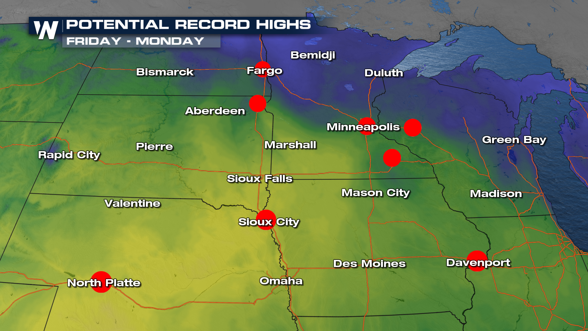 With daytime highs that will push 30° above-average, record highs will be possible from Friday through Monday.